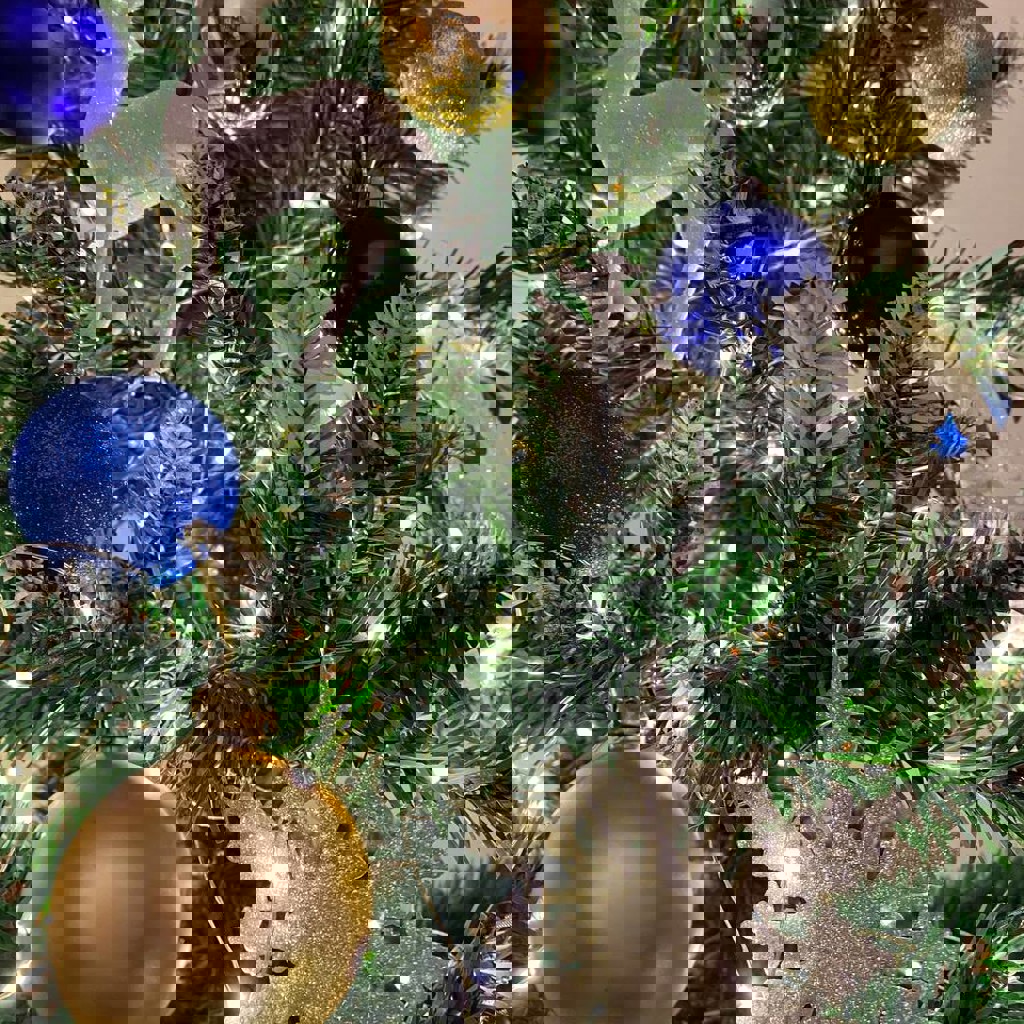 Елка новогодняя с гирляндой «роса» и игрушками