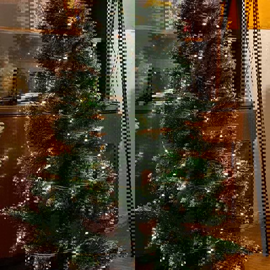 3) Елка новогодняя с гирляндой «роса» и игрушками
