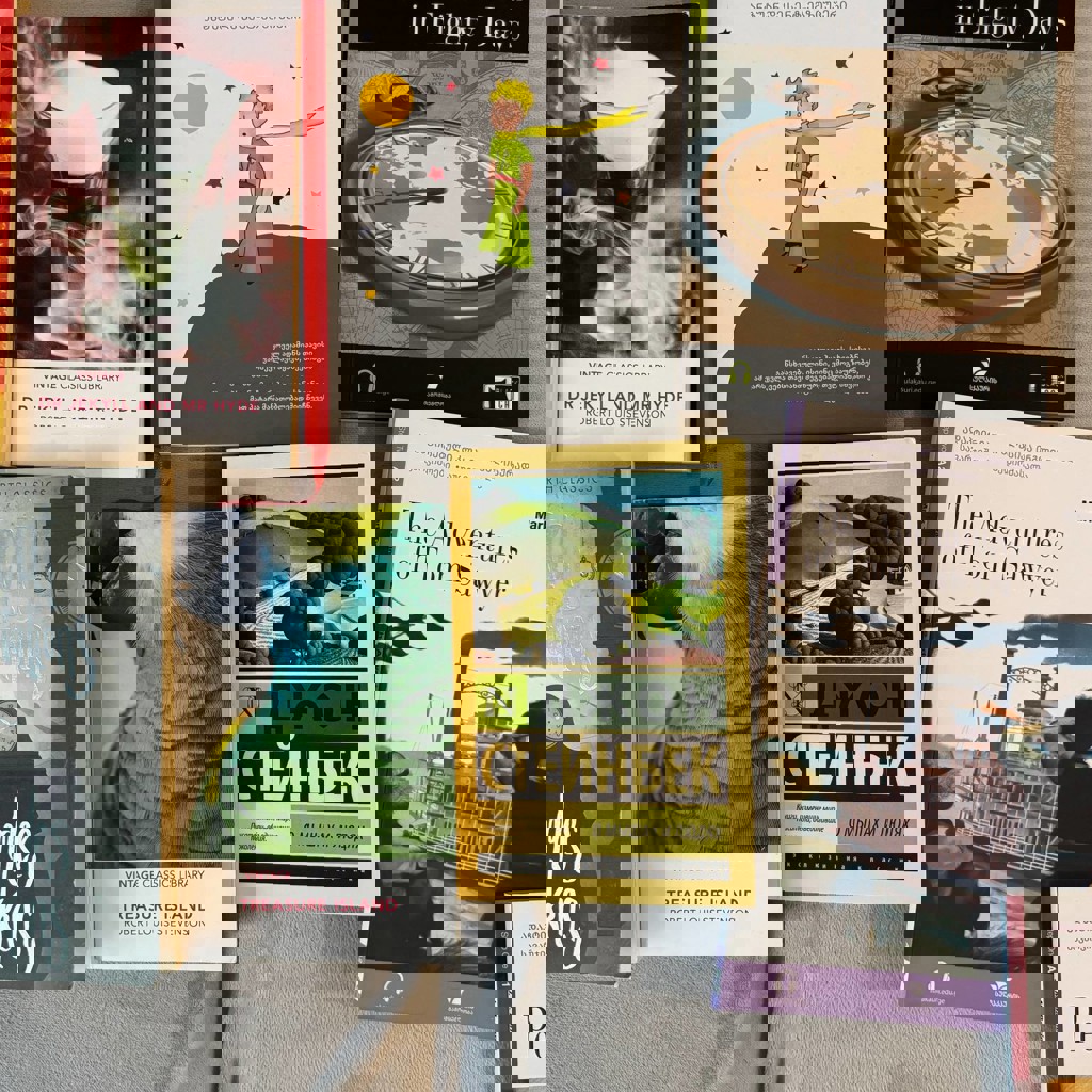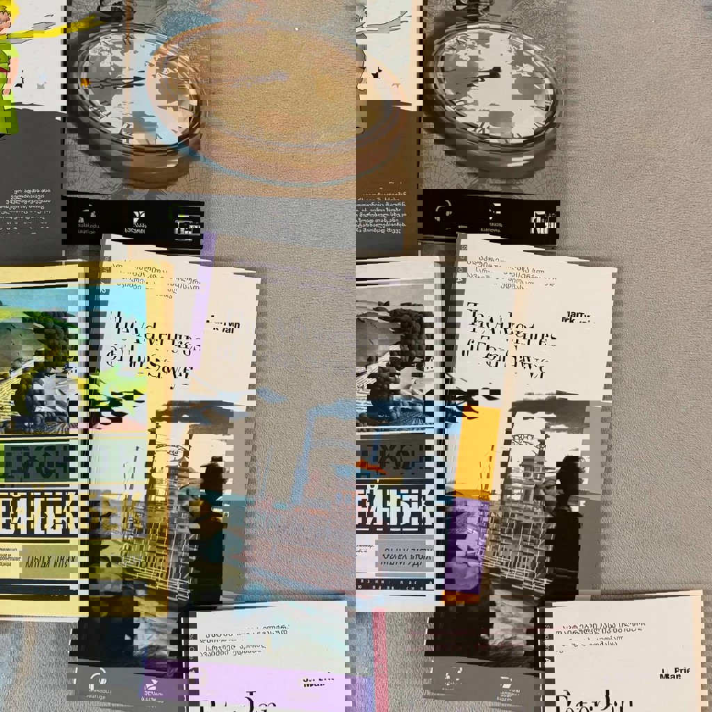 Пособия по английскому языку на основе произведений - А1 Peter Pan(исписана половина, отдам в подарок к остальным), А2 The Adventures of Tom Sawyer, B1.1 Around the world in Eight Days