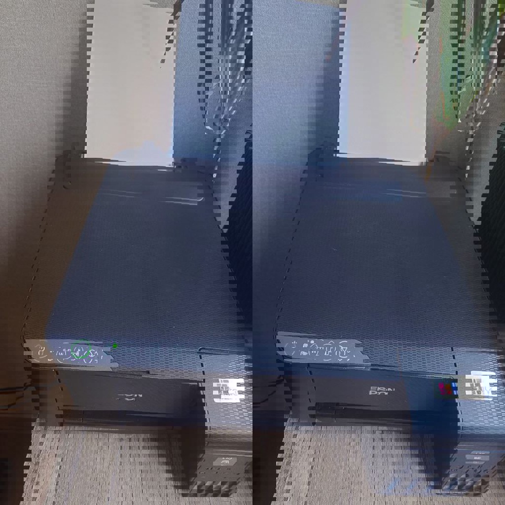 Цветной принтер Epson L1250 Ecotank. Использует жидкие чернила вместо картриджей. Подключается через Wi-Fi или Ethernet.