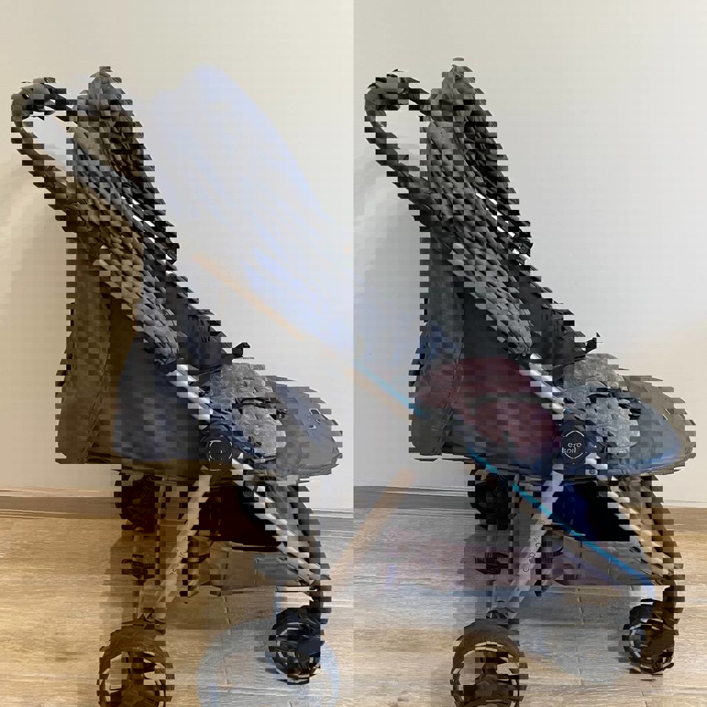 Прогулочная коляска до 22 кг Espiro Wave (практичный темно-серый цвет). Огромный капюшон отлично защищает от солнца и ветра. Спинка плавно раскладывается до горизонтального положения и поддержка для ног поднимается для сна. Колеса с хорошей амортизацией, вместительная корзина для вещей. Коляска маневренная и удобная в управлении. Складывается одной рукой до 'книжки', при перелётах пропускали на ней прямо до трапа. Состояние: Хорошее. Ходовая часть, механизмы складывания и раскладывания, а также смена положения спинки работают отлично. Из нюансов: на текстиле присутствуют потертости, утерян бампер. В комплекте: Накидка на ножки, мягкий матрасик-вкладыш для сиденья, ремни безопасности для крепления ребенка.