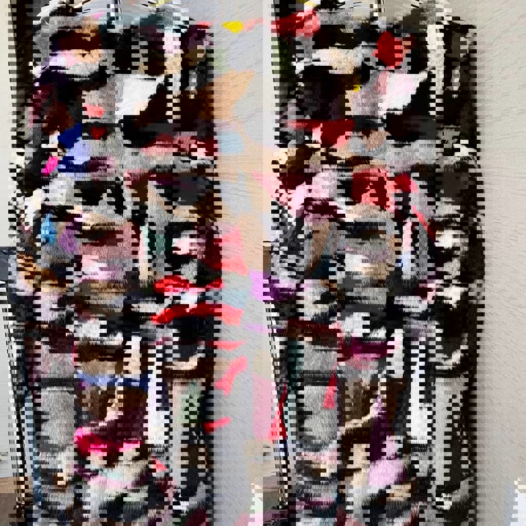 Женская натуральная шуба из разного вида меха.