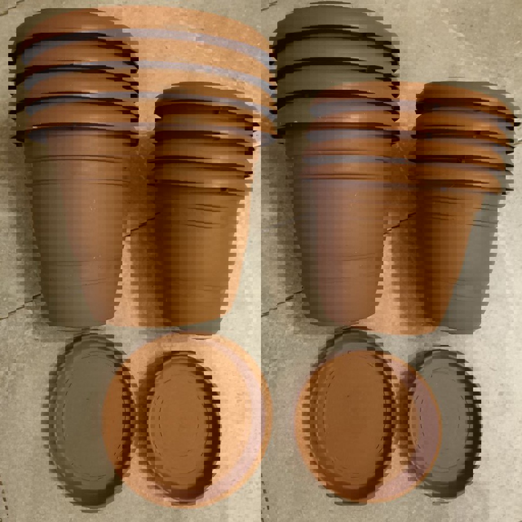 Горшки цветочные, пластиковые. Все с поддонами.