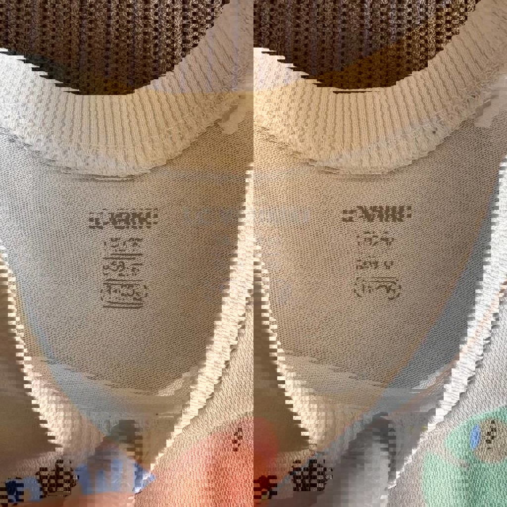 Есть небольшие пятна от сока, не отстирываются, но не сильно яркие.