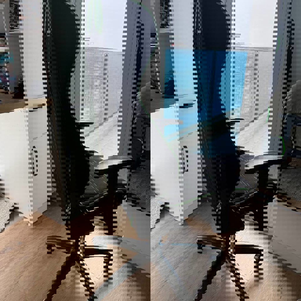 Продаю сразу два одинаковых кресла. Покупали в январе, состояние практически новое. Эргономичная спинка — комфортно долго сидеть. Подголовник + поясничная поддержка. Регулировка высоты. Прочная база, плавный ход. Ткань — не трескается и не липнет. Есть родные коробки — удобно для перевозки.