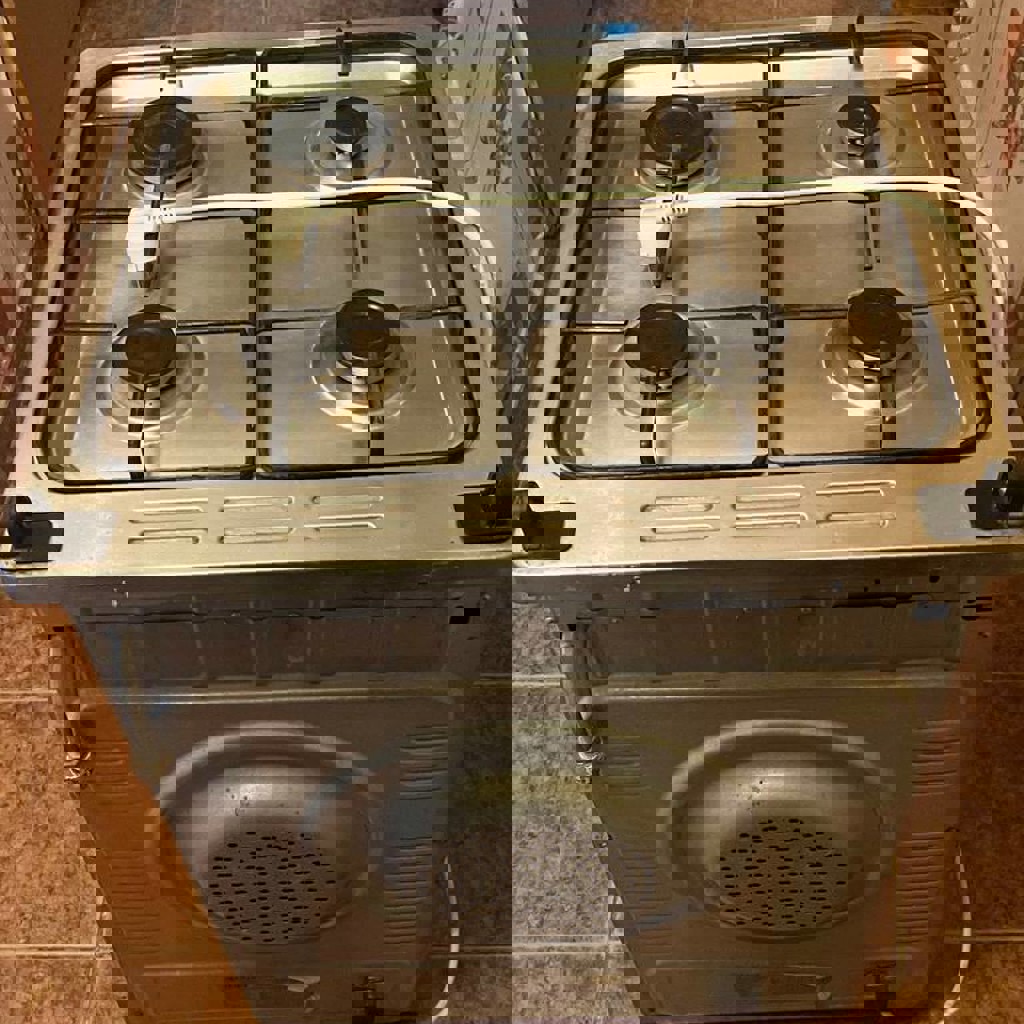 Фирма ITIMAT. В хорошем, рабочем состоянии. Работают все 4 конфорки и духовка. В комплекте 2 жаровни.