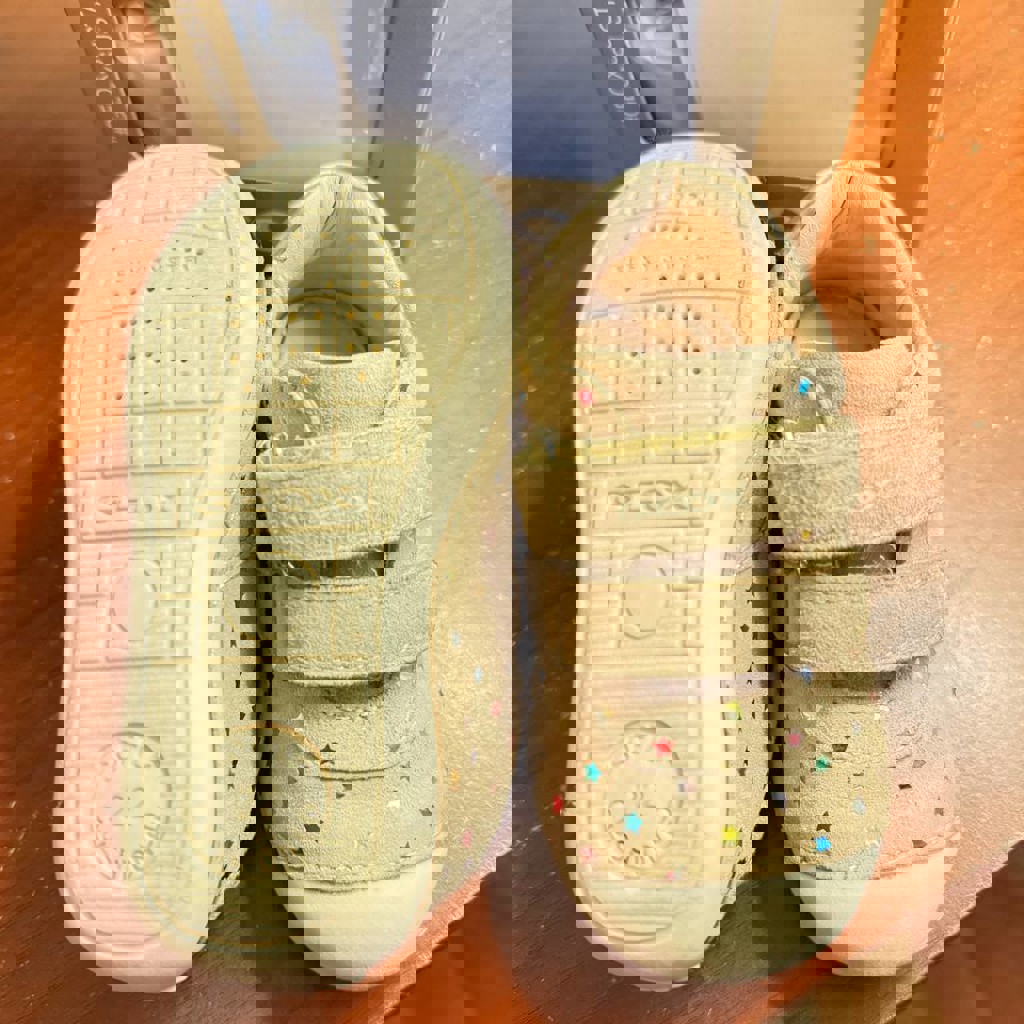 Кроссовки для начинающих фирмы Geox- “First steps”. Размер 22, антибактериальная стелька, мягкая подошва, обувь кожаная.