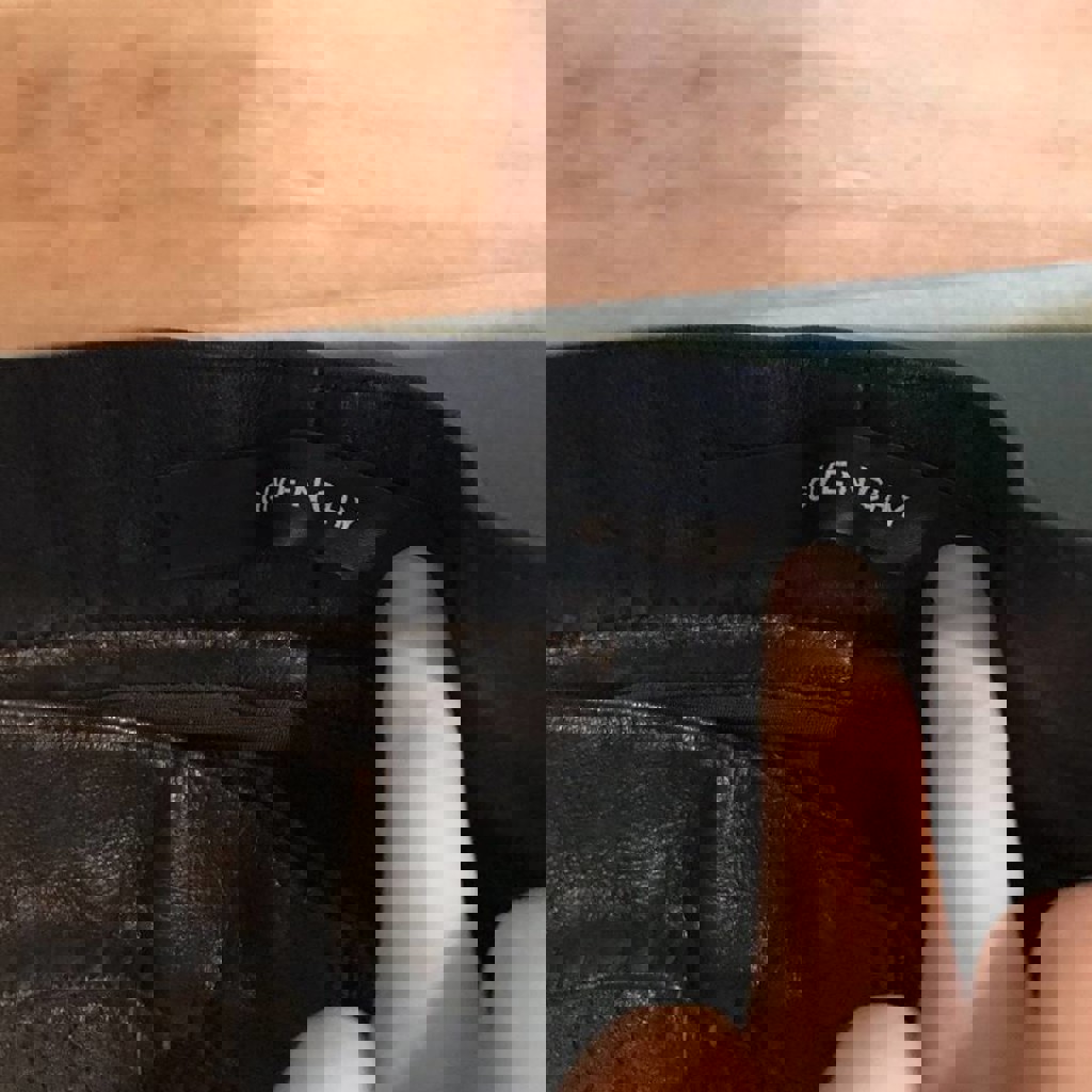 Новые кожаные брюки Givenchy (оригинал) выполненные из текстурированной кожи ягненка с плиссированными деталями.
