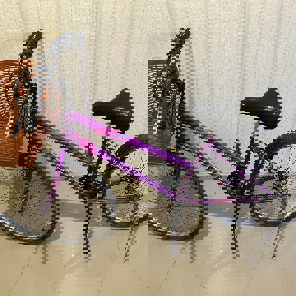 Удобный и стильный велосипед для повседневных поездок по городу. Отлично подойдёт для прогулок, поездок в магазин или на работу. Почти всё оборудование — Shimano. Удобная передняя корзинка. Колеса 26 диаметр.