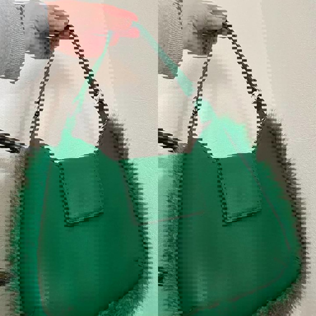 Зеленая сумка с мехом
