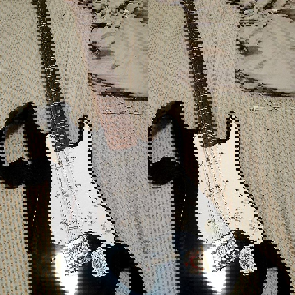 Оригинал Fender squire mini из Индонезии 2021 года в самом рабочем состоянии, разве что одна маленькая вмятина на корпусе от чего и цена сильно ниже. В подарок к гитаре отдам чехол, педаль, инструмент для замены струн, каподастр.