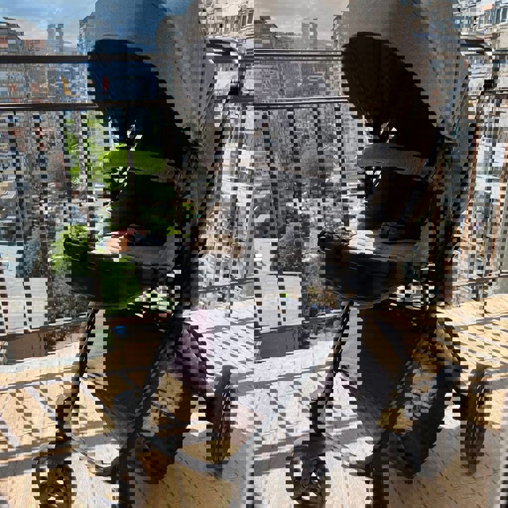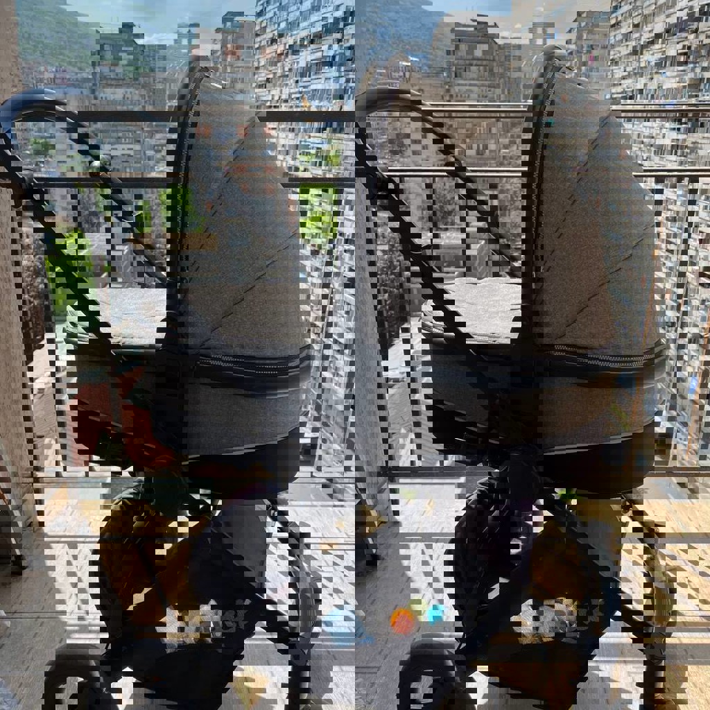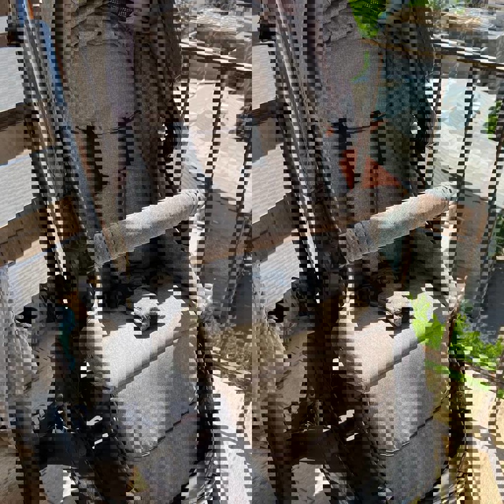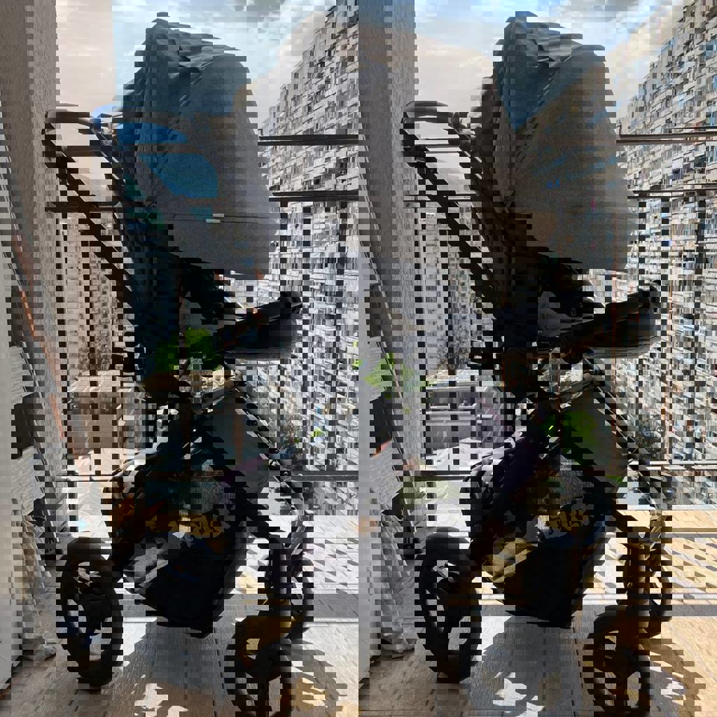 В комплекте люлька для младенца, автокресло для младенца, сидячая коляска. Также в комплекте тёплый бампер для люльки и сидячей коляски, дождевик. Очень проходимая, маневреная, удобная. Большое отделение для вещей внизу. В отличном состоянии.