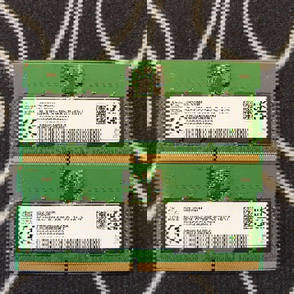 Hynix DDR5 2x8 gb, 5600 MHz, формат sodimm (ноутбучные) + адаптеры для использования в компьютерах (sodimm to dimm) + aRGB кулер для их охлаждения.