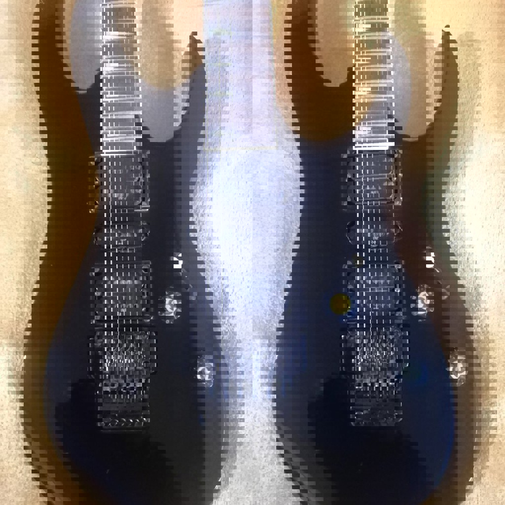 Состояние отличное, строй держит, гриф отстроен, электроника работает без шумов. Очень удобный инструмент — быстрый гриф Wizard. Стоит фирменный Ibanez Edge III — полноценная трем-система типа Floyd Rose. Игралась аккуратно, без колхоза и лишних вмешательств. Идеальна для рока, металла, блюза и всего, где нужна атака и сустейн.