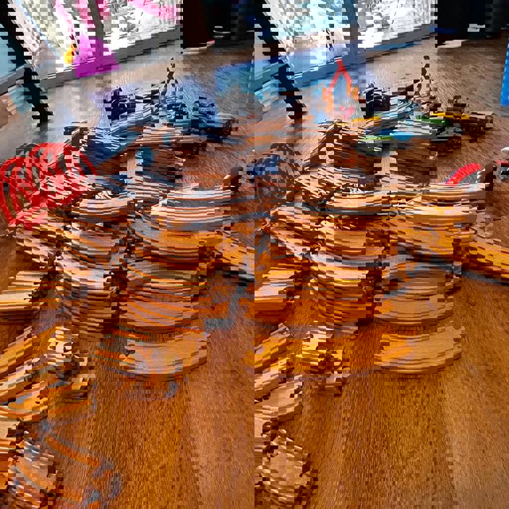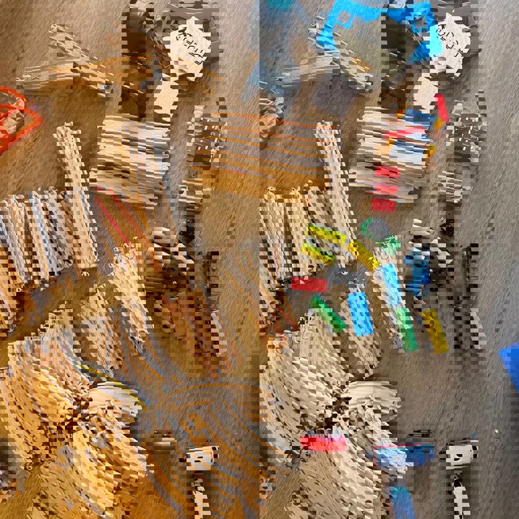 Отрываем от сердца икеевскую деревянную дорогу. Радость для детей от 2х и пока не надоест. В основном всё производства икеи, но есть рельсы-аналоги. Всё подходит друг к другу, собирается очень большая дорога.