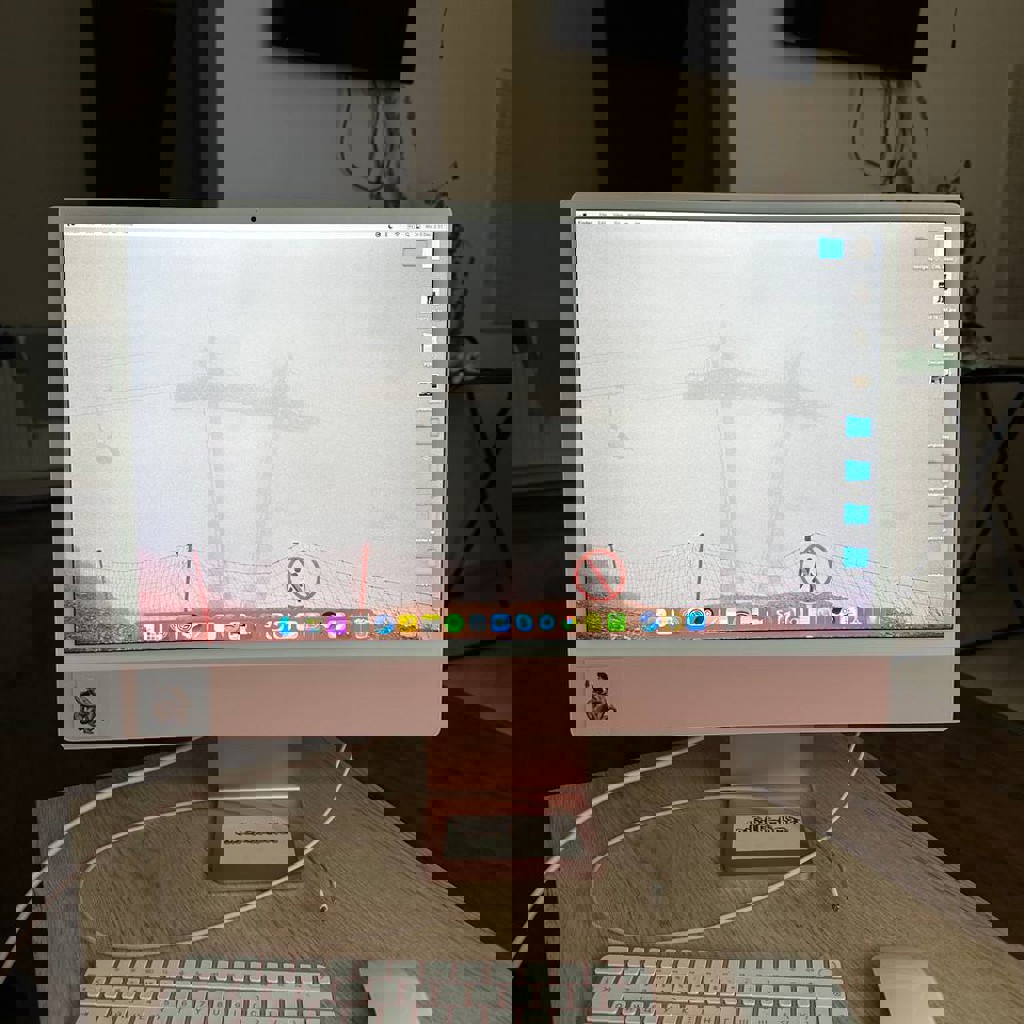 IMac 24-inch, M1, 2021. Покупал в россии сразу до уезда в грузию в марте 2022 года. Чуть больше года не был в эксплуатации (23-24 год). Не лагает, на нем можно даже играть в доту)) Полная комплектация (блок питания, клавиатура, мышь, провод) + сама коробка!!! Без царапин, коцык или сколов, он в отличном состоянии.