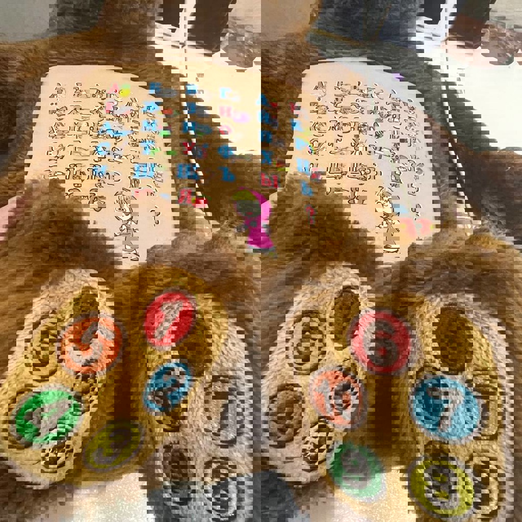 Мишка интерактивная игрушка что б учить с ребенком буквы и цифры. Каждая буква рассказывает сказку при нажатии.