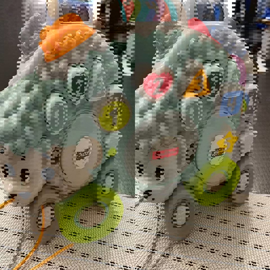 Интерактивный ежик fisher price на веревочке (каталка) с цветами, фигурами, счетом и песенками.