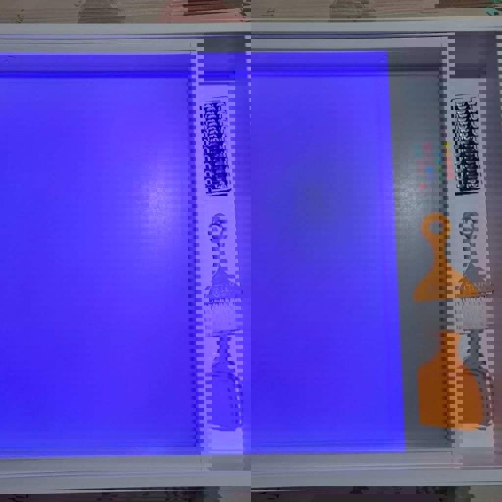 Интерактивный стол-песочница фирмы Foxlik в отличном состоянии. Грифельная доска, цветная подсветка + кварцевый песок для рисования, карта и лего-платформа, регулирующиеся ножки под рост. Может использоваться как парта. Заказывали из России, пользовались совсем немного.