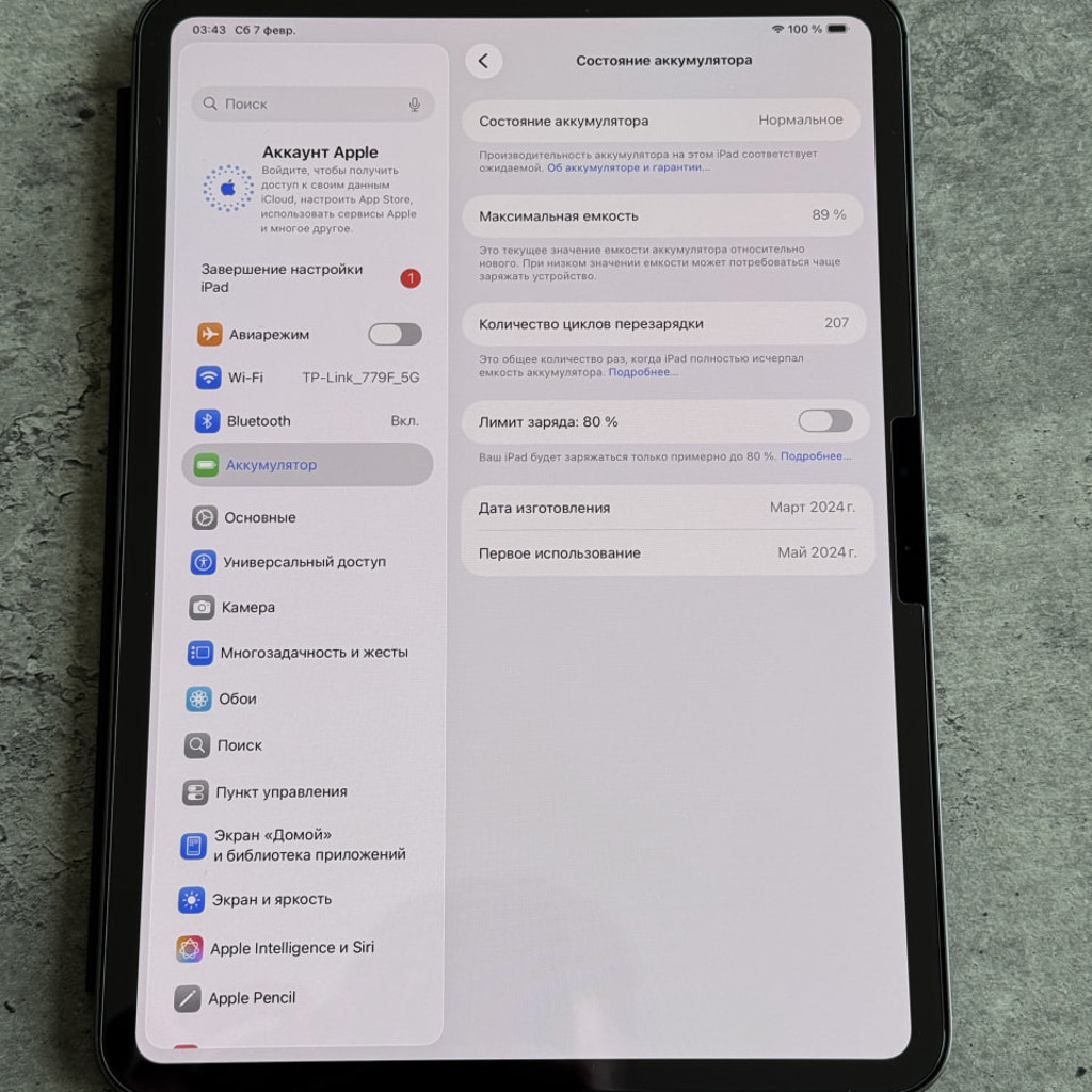 Продам iPad Pro 11'' M1 256 GB в идеальном состоянии, за исключением маленькой царапины на боковой части корпуса (видно на фото). В комплекте так же: Оригинальный чехол Apple Smart Folio, Кабель для зарядки Apple USB-C. На экране установлено качественное защитное стекло. Дополнительно отдам еще одно такое же стекло в подарок. Максимальная емкость аккумулятора 89% (207 циклов)
