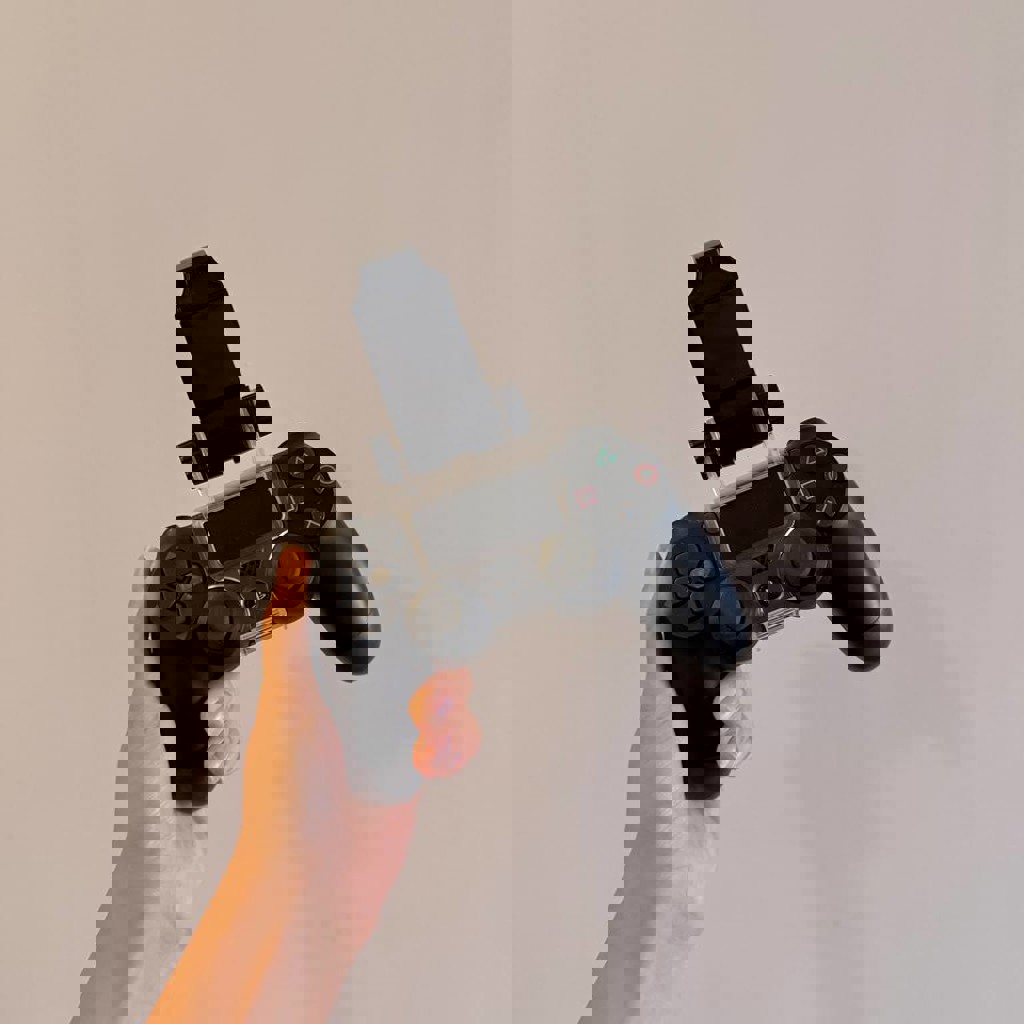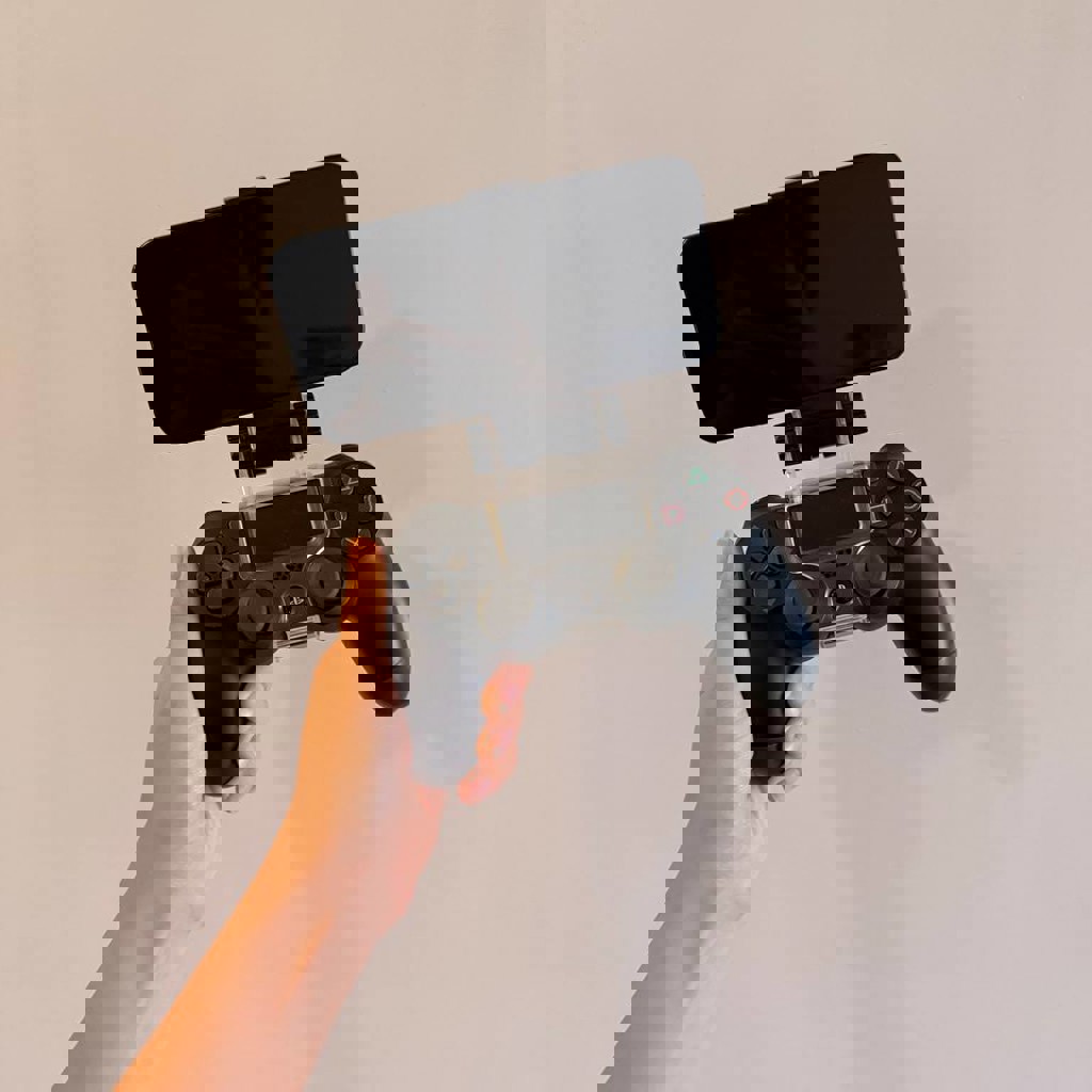 Джойстик на Sony PlayStation 4 в комплекте с держателем для телефона.
