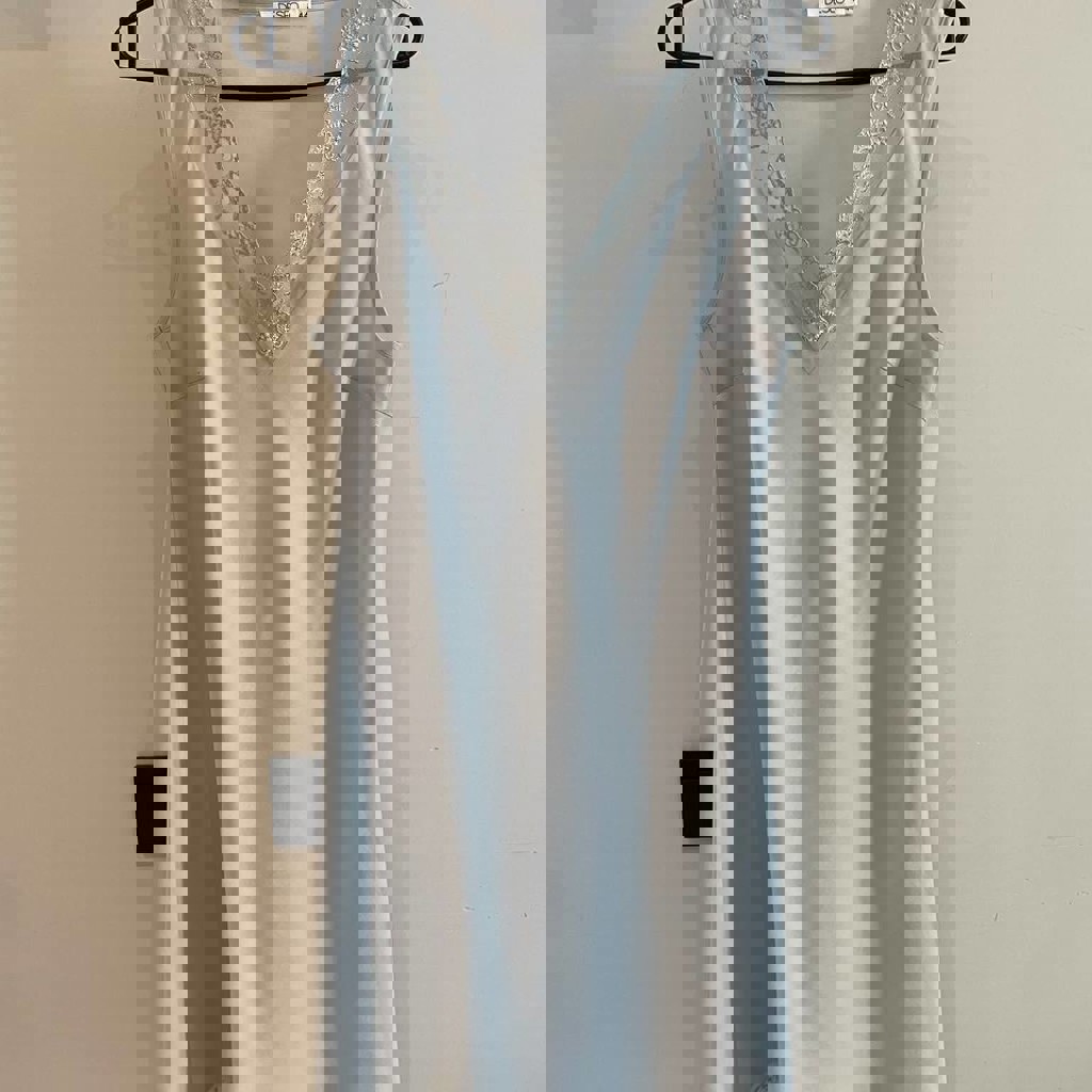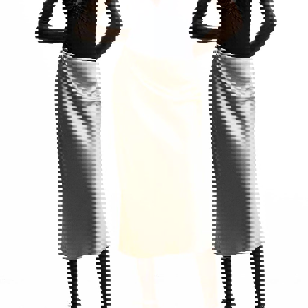 Юбка Mango серо- перламутрового цвета. Сатиновый атлас. Пояс на резинке. Без застежки. Длина 85 см. Размер S.