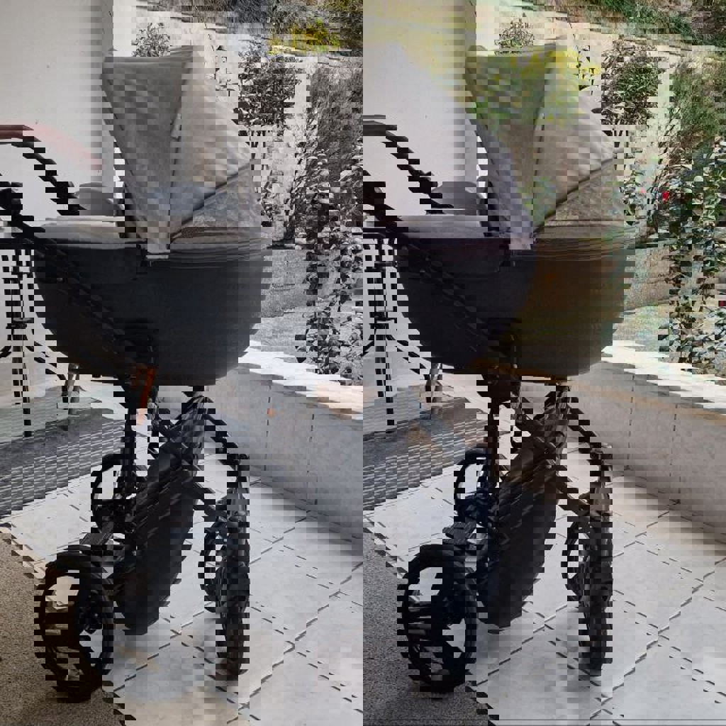 Коляска Junama 3в1, есть небольшой дефект в фиксации капюшона люльки (не плотно фиксируется), нет сумки.