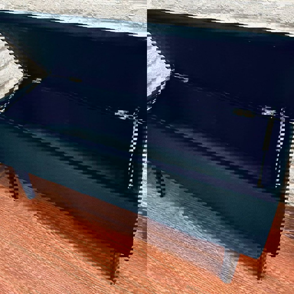 Банкетка с местом для хранения, выполненная из бархатной ткани и массива дерева. Размеры: Ш 95 x В 45 x Г 37 см. Состояние отличное, как новая.