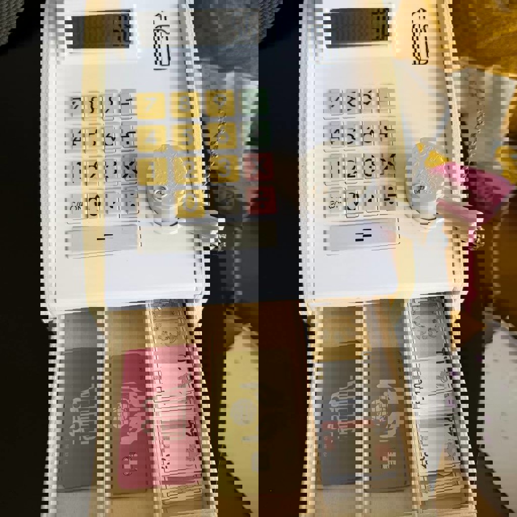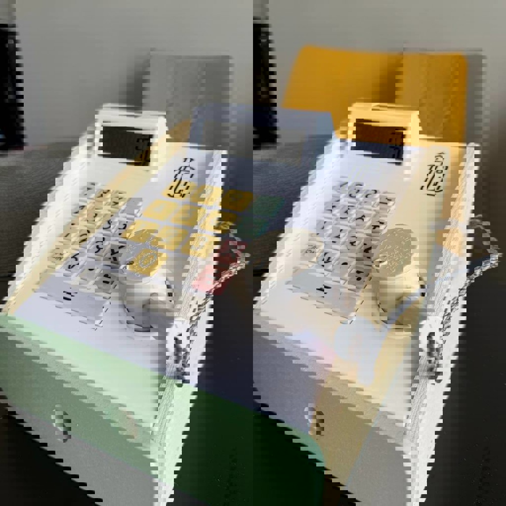 Касса из дерева, предназначенная для игр с деньгами и карточками.