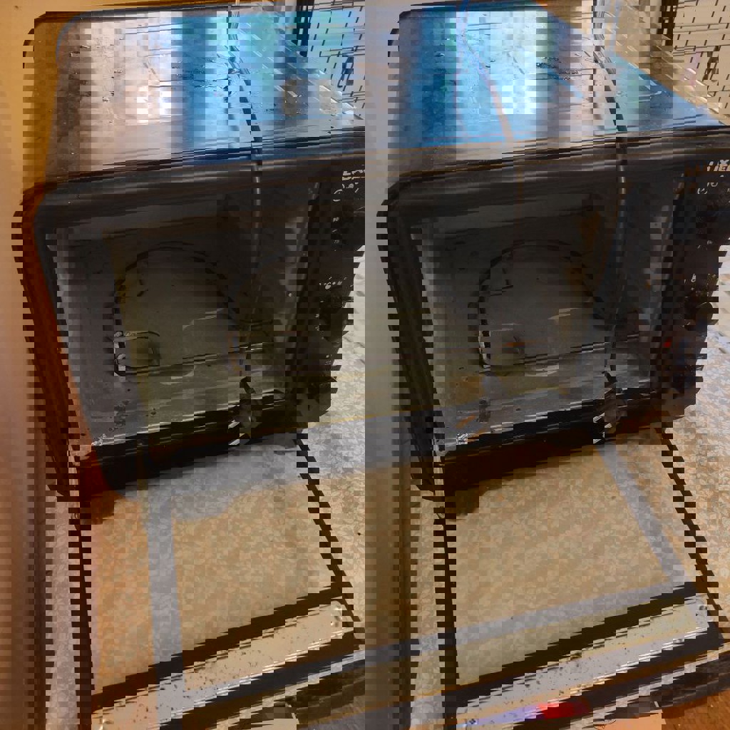 2-3 фото: Портативная, электрическая духовка с 2 противнями и решёткой. 1,5 года исправно служила, никаких проблем не возникало. Разогревается до 240 °С, можно готовить используя верхний и нижний ТЭНы как по отдельности, так и вместе. Цена за всё - 300 лари.