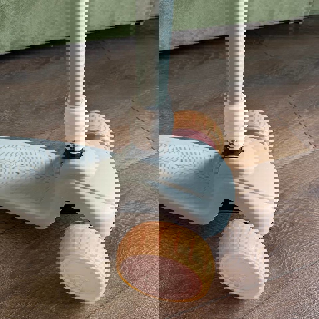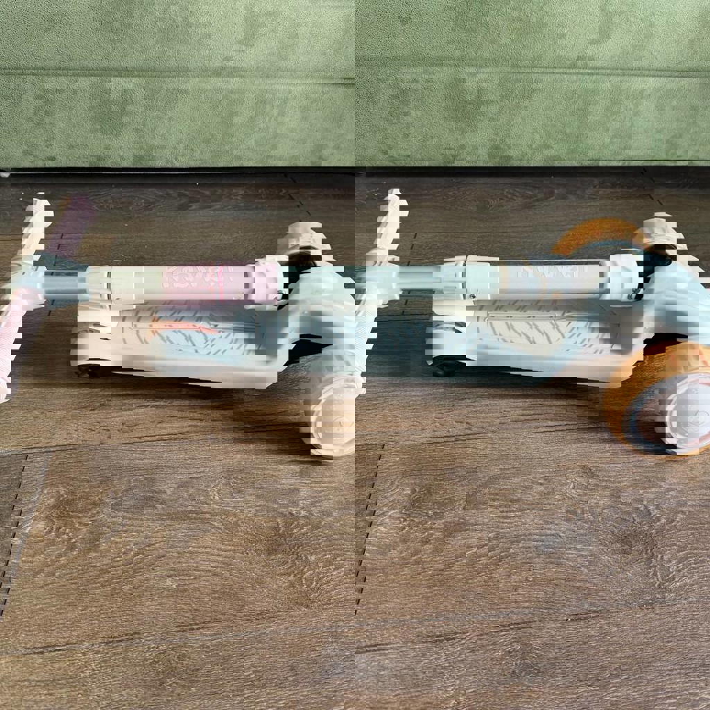 Трехколесный самокат Kidwell Jax в серо-розовом цвете. Оснащен светящимися широкими полиуретановыми колесами и регулируемым по высоте рулем (67–80 см). Имеет складную конструкцию для удобного хранения и транспортировки. Управление осуществляется балансировкой тела (наклоном руля).