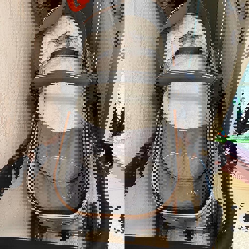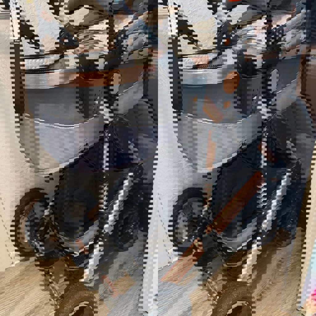Коляска после второго ребёнка (мы — второй хозяин), использовалась бережно. Надёжная и удобная в эксплуатации — крепкие колёса с хорошей амортизацией, отлично подходит для прогулок по разным дорогам. В комплект входит: • люлька • автолюлька