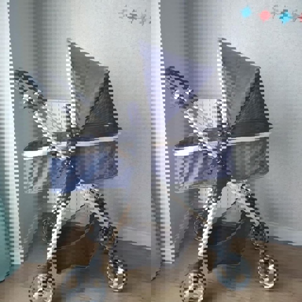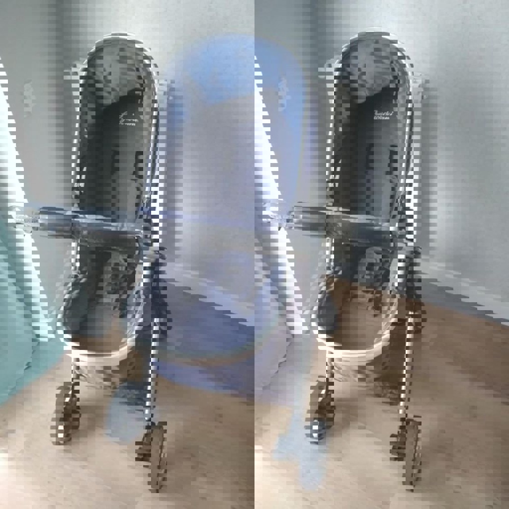 В комплекте автокресло-переноска; люлька с регулируемым подголовником и режимом лето-зима; сидячий блок, раскладывающийся в полноценное лежачее место; дополнительные вкладыши на сиденья, 2 дождевика, сумка. Состояние хорошее. Из минусов - на ручке потрескался и местами облез кожзам.