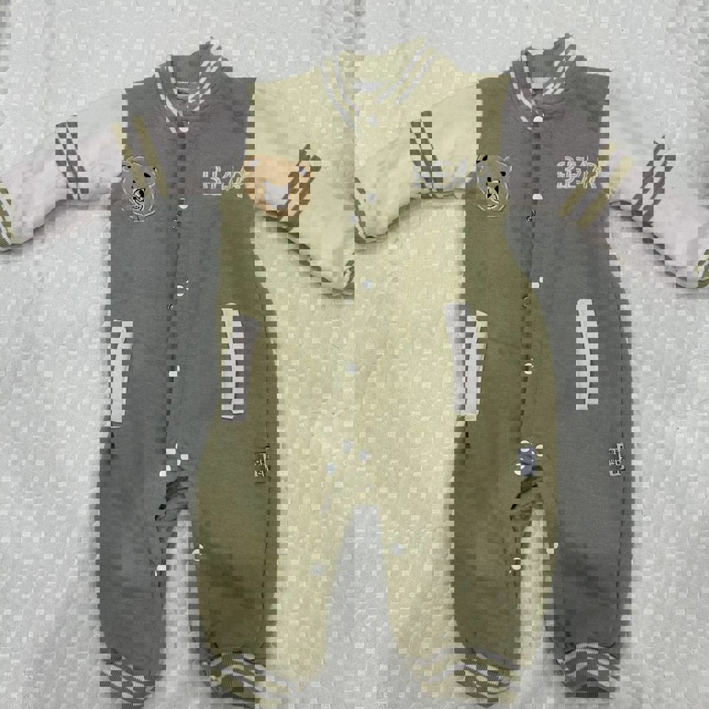100% хлопок. Написано 9-12 мес, но по факту на нашего крупного малыша вышел бы 6-9 месяцев, не подошел размер.