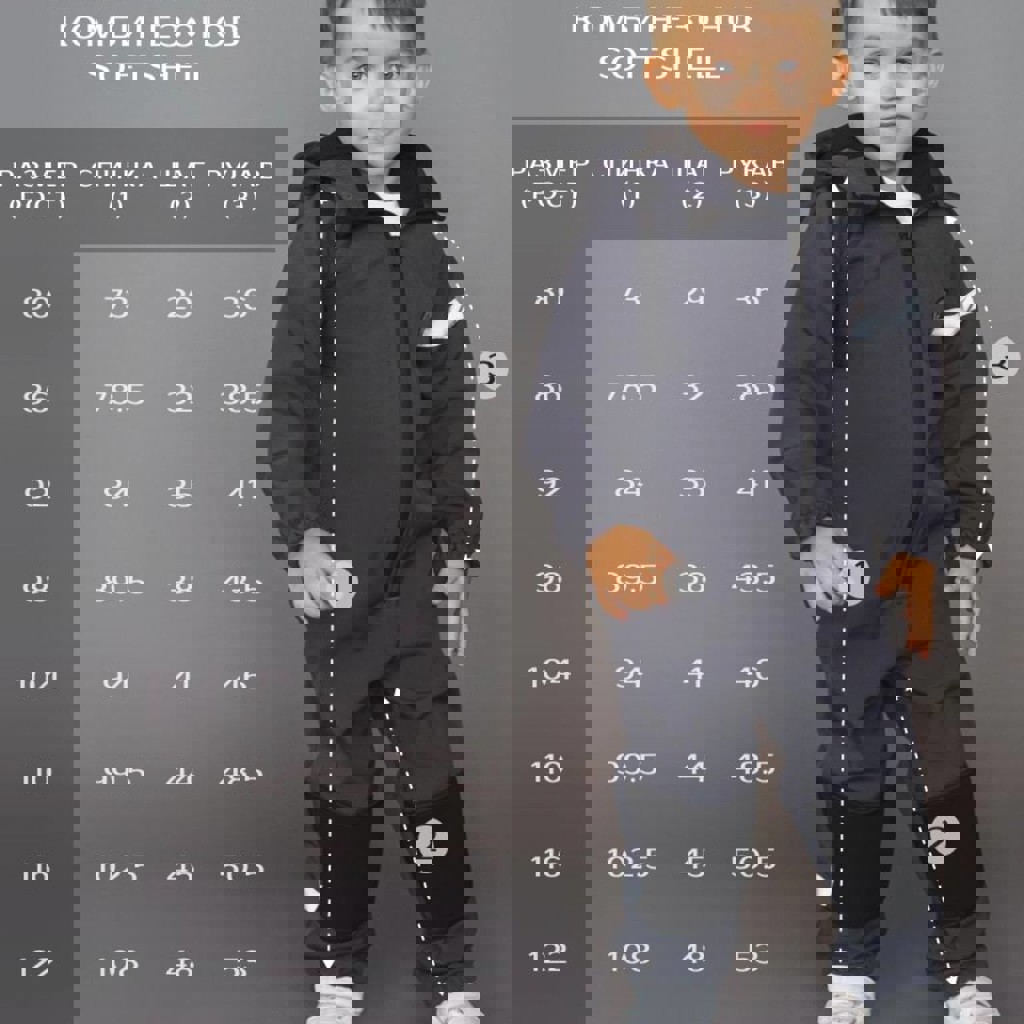 Комбинезон утепленный Polzcom материал softshell, температурный режим +5…+17, не пропускает ветер и отталкивает воду, сохраняет тепло тела на грузинскую зиму, малыш носил до конца прошлой недели, но уже очень мал. Размер 80, есть штрипки, для дополнительной защиты наколенники из неопрена.