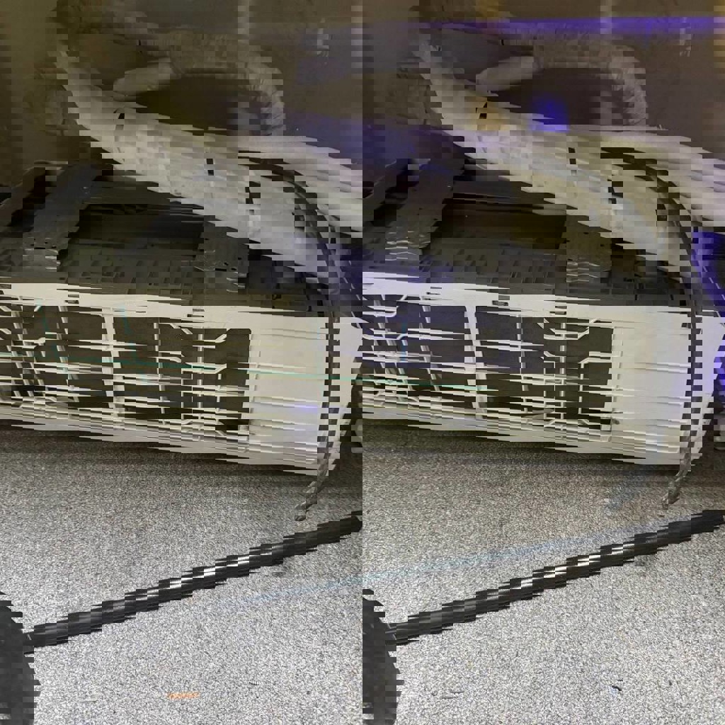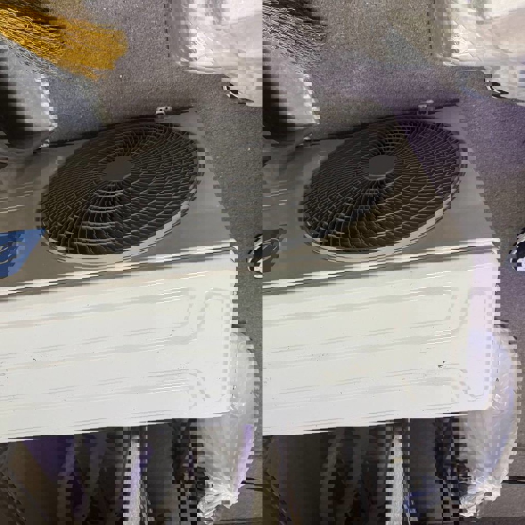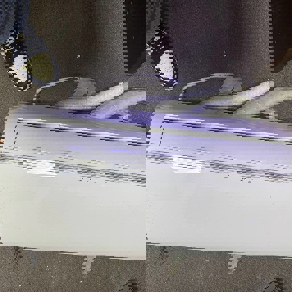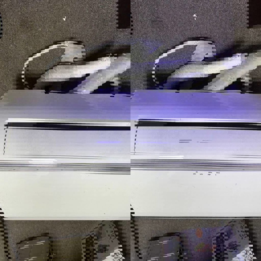 Комплект кондиционера с трубами, в рабочем состоянии, готов к установке.