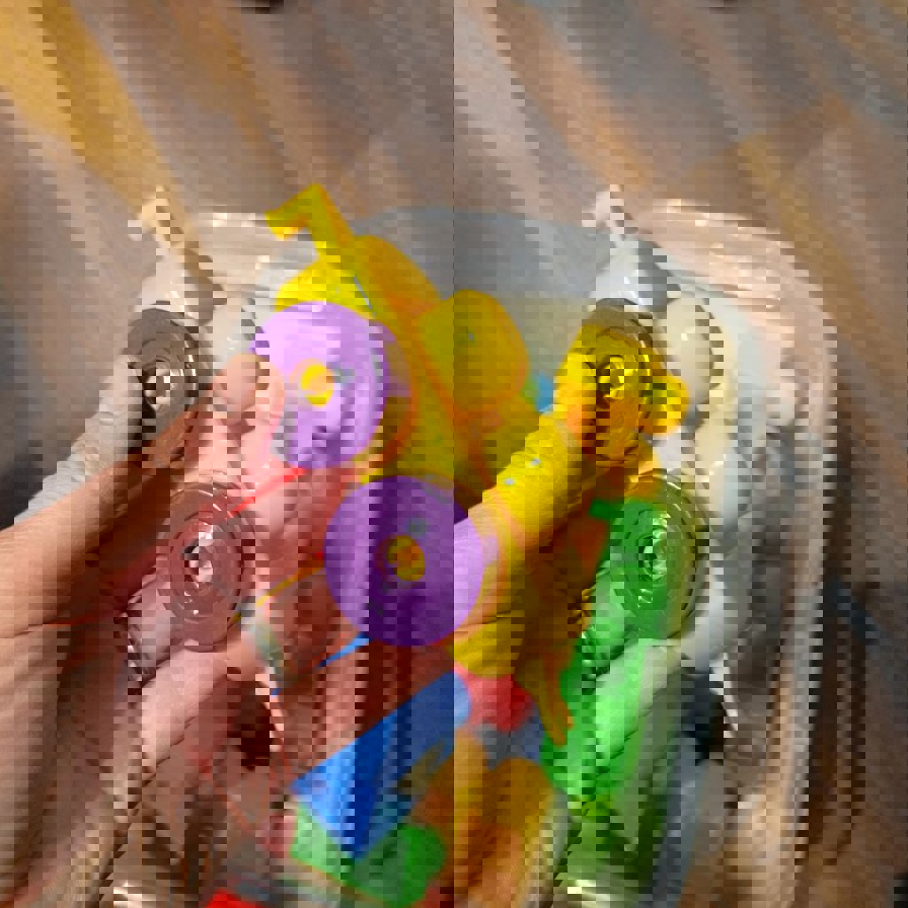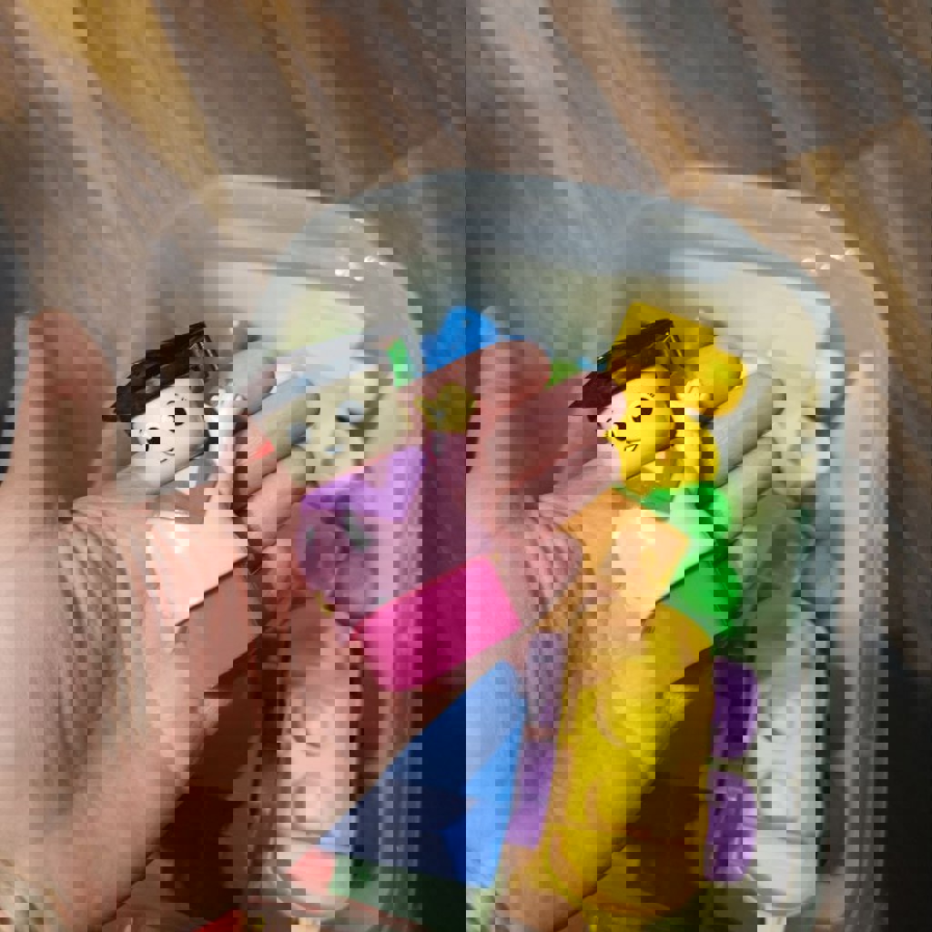 Крупный конструктор. Одного колеса нету, но в остальном все в порядке. Подойдёт маленьким инженерам от 1 года, мб и младше.