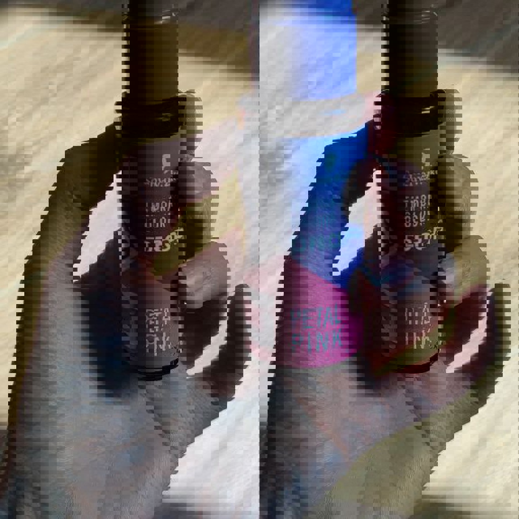 Временная розовая краска для волос. Смывается полностью через 10 мытьев головы примерно. Остаток там где большой палец. На Хэллоуин или просто взбодрить голову:)