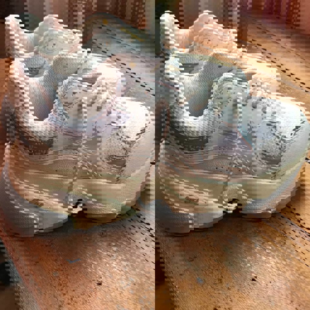 Удобные кроссовки на каждый день — подойдут для прогулок, школы или спорта. Подошва не убитая, носились аккуратно. Есть небольшие следы носки (видно на фото), но в целом выглядят нормально.
