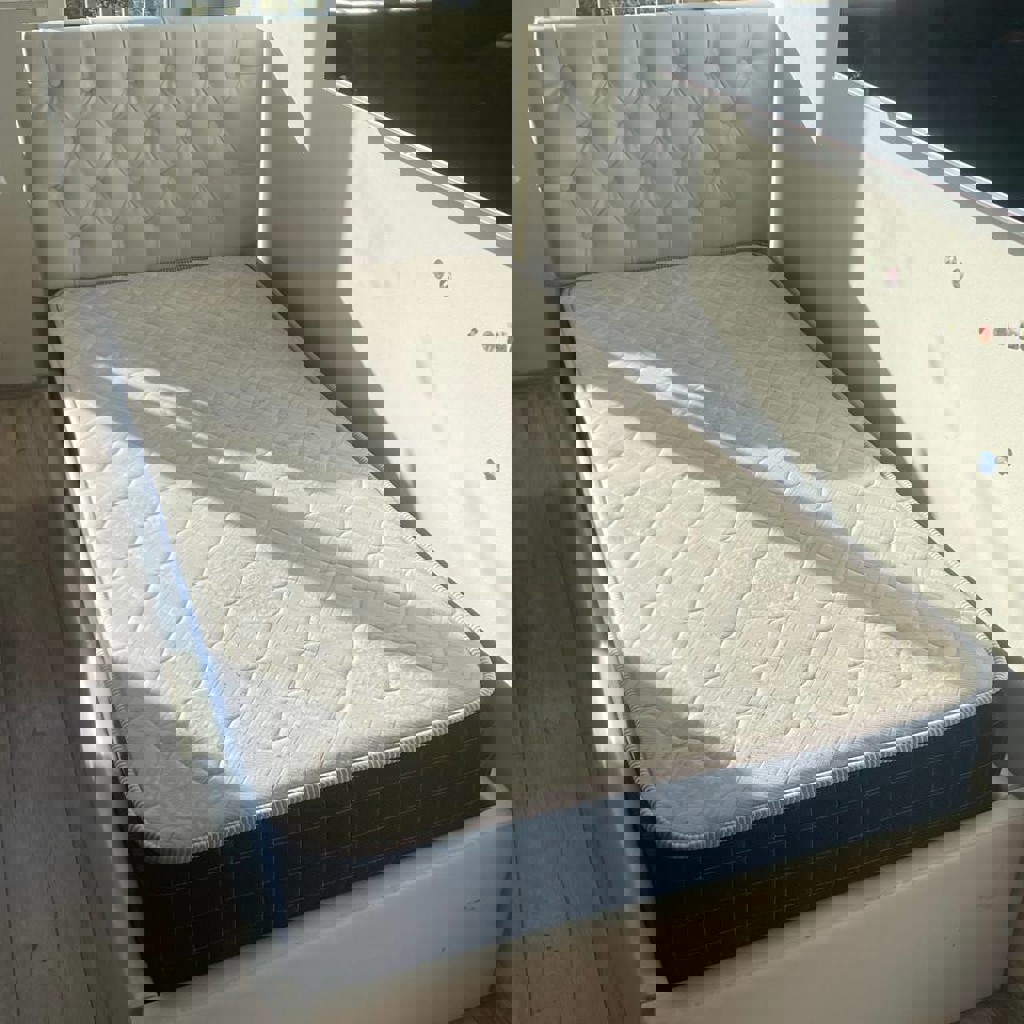 Кровать с мягким изголовьем. Идет в комплекте с матрасом! Длина кровати: 97*187, длина матраса: 90*180. Идеально подойдет для детей и подростков.