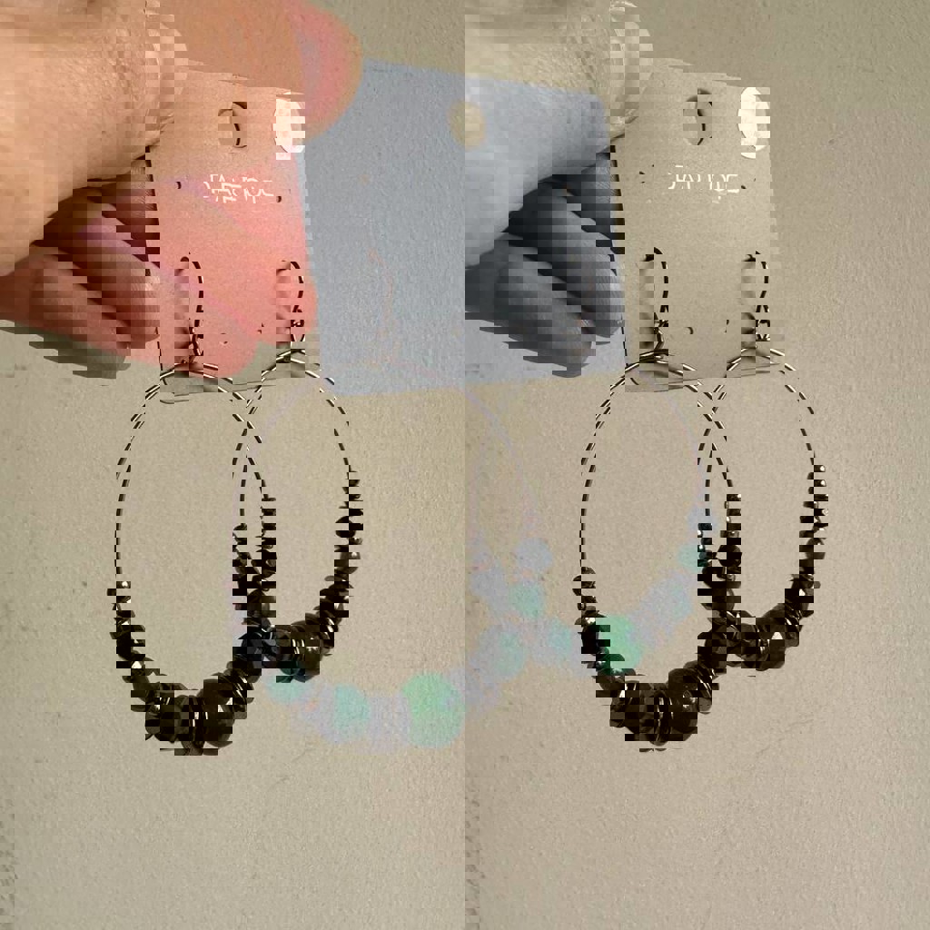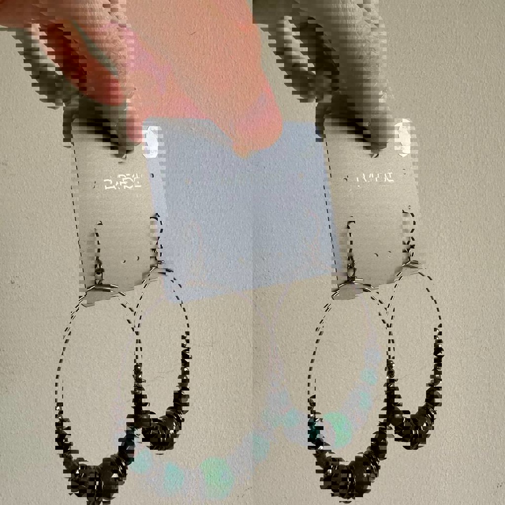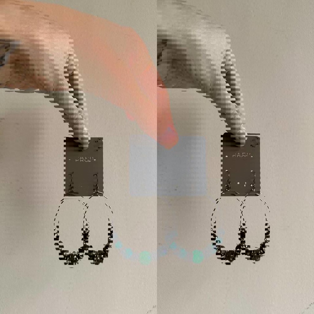 В наличии две пары круглых сережек PARFOIS с бусинами + натуральные камни. Диаметр 5 см.