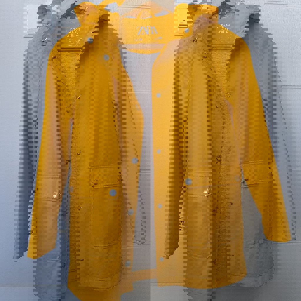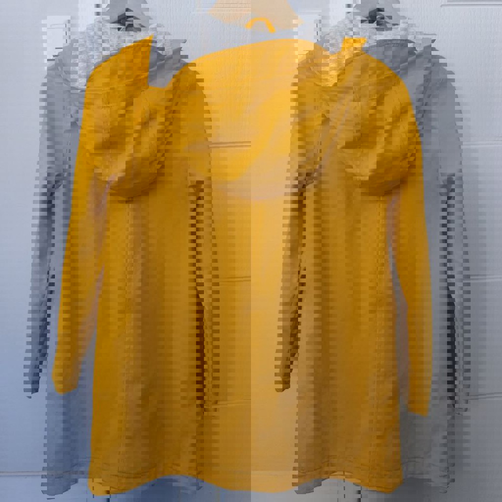 Непромокаемая водонепроницаемая куртка с капюшоном, размер 9-10 лет, на рост 140 см, хлопковая подкладка, в хорошем состоянии, есть небольшие пятна.