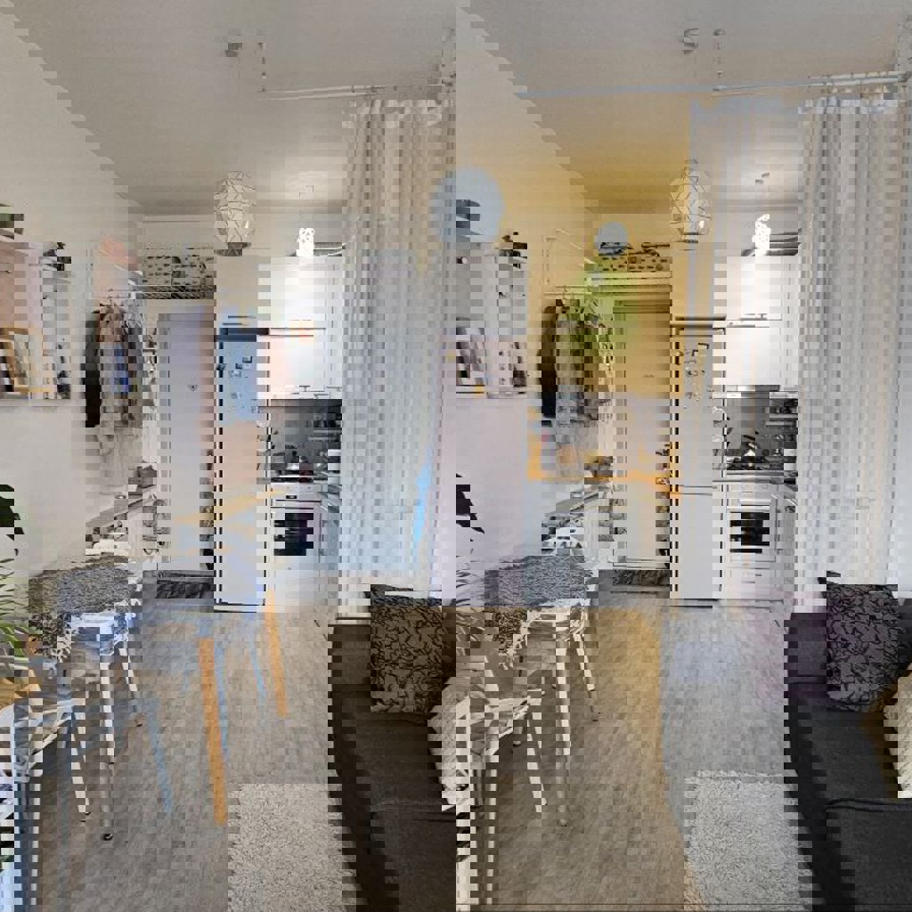 Уютная, творческая квартира в классном зелёном микрорайоне. Много магазинов, кафе, коворкингов. Спальня: 1, площадь: 42 м2, этаж: 9 (из 10), балкон с гамаком и красивым видом.