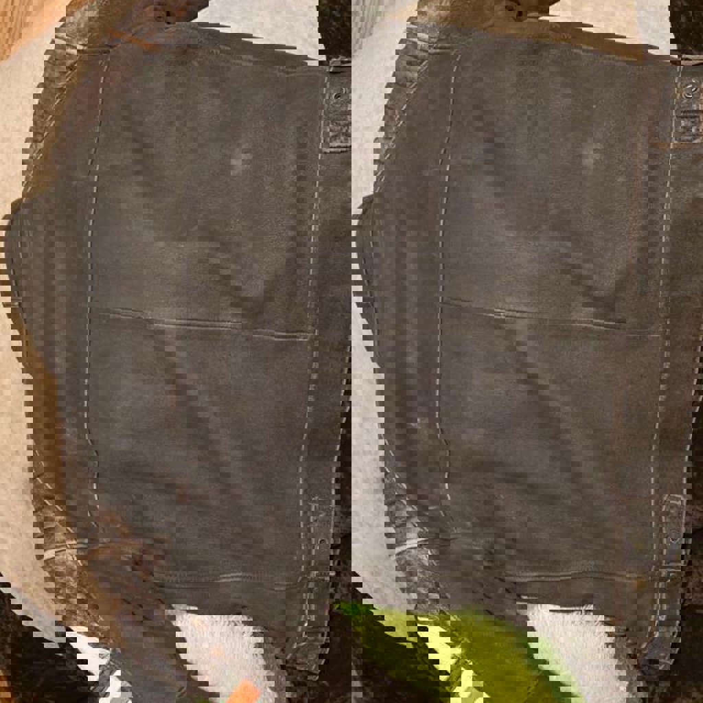 Мягкая, качественная кожа. Установлена защита плеч, локтей и спины. Отстёгивающаяся подкладка — удобно для разной погоды. Использовалась очень мало. Без падений и аварий, не ронялась. Все молнии, швы и элементы защиты в полностью рабочем состоянии.