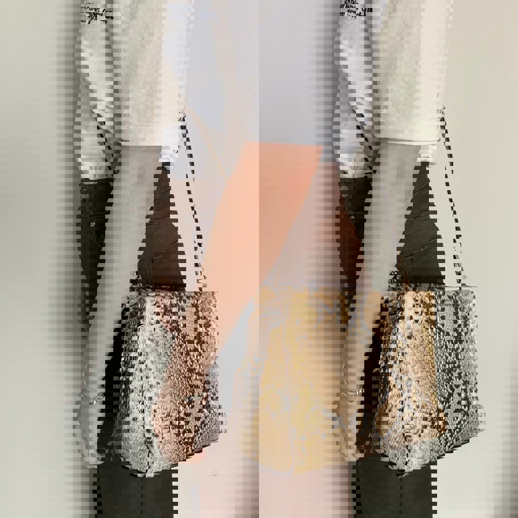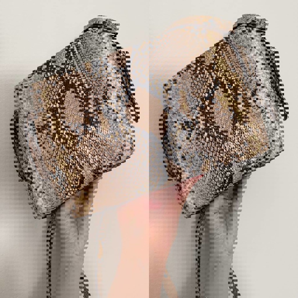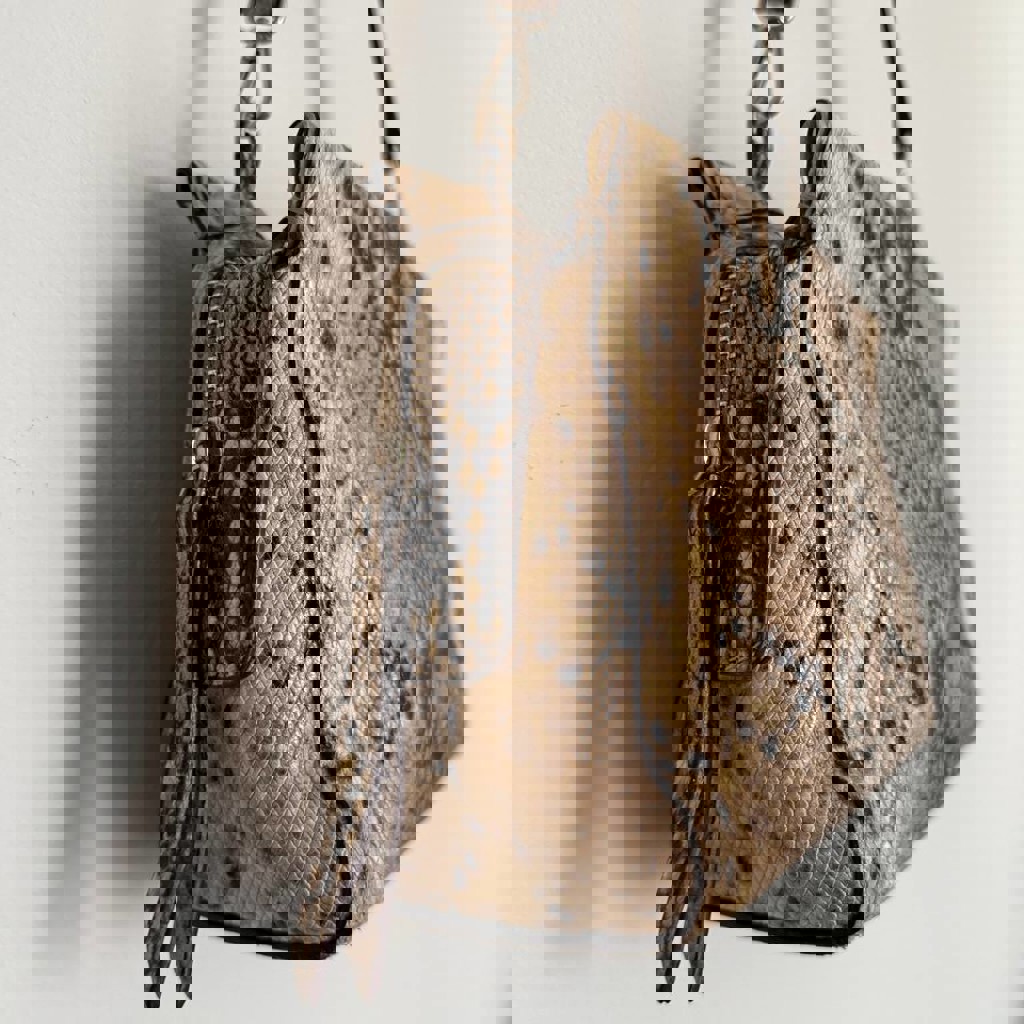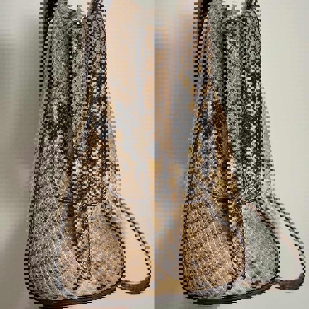 Кожаная сумка Massimo Dutti со змеиным принтом. В хорошем состоянии, есть небольшие едва заметные дефекты - приложила фото.