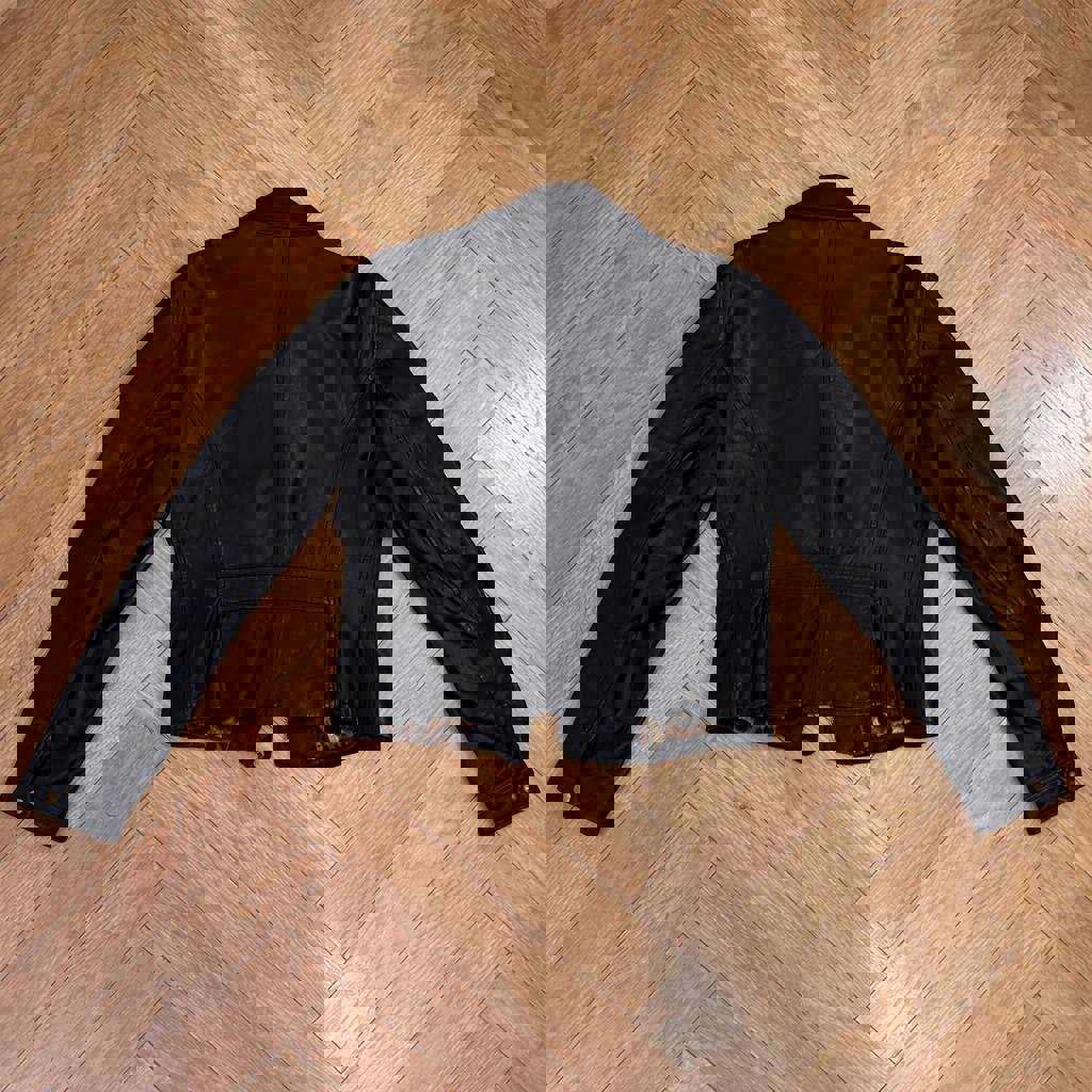 Кожаная куртка Dolce&Gabbana, коллекция 2010ых, шёлковая подкладка, размер XS-S. Есть маленький дефект внутри кармана который можно исправить.