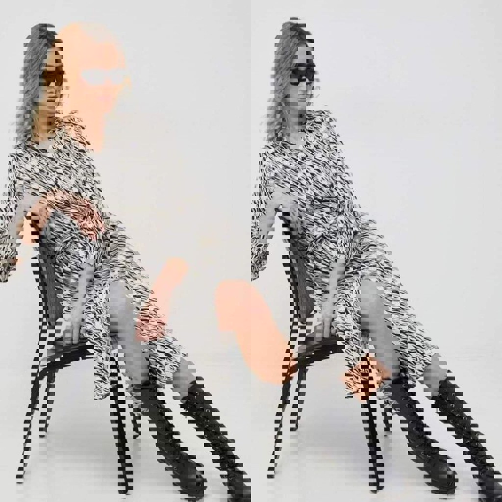 Легкое платье из коллекции Sisley. Прямое. Модель выполнена из узорной ткани. Струящийся, деликатный на ощупь материал.