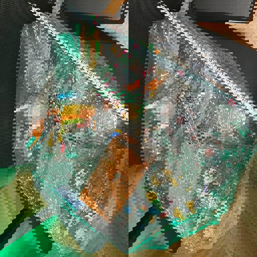 Огромная коробка конструктора, боюсь представить сколько там разных наборов, по ощущениям примерно 10-12кг. Собранный корабль (могу разобрать его и сложить запчасти отдельно, чтобы вы потом собрали).