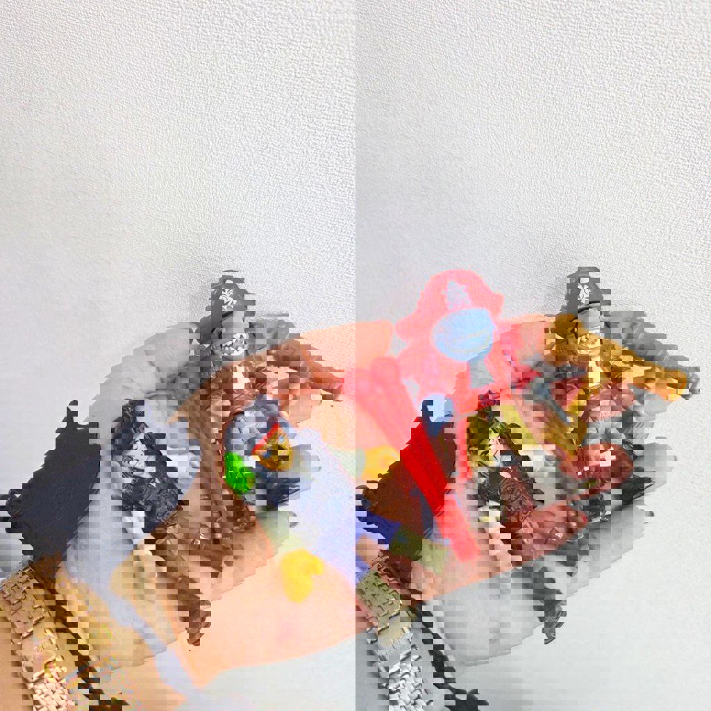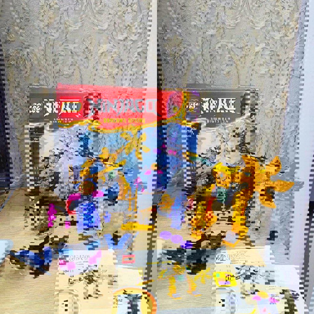 Не хватает кистей у персонажа, и несколько деталей для сборки черно-фиолетовой машины. Инструкции есть.