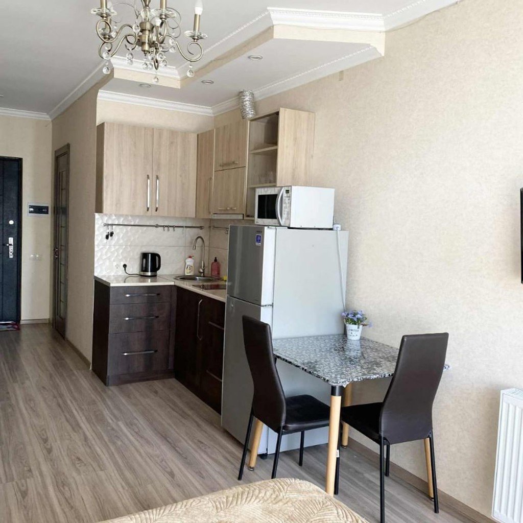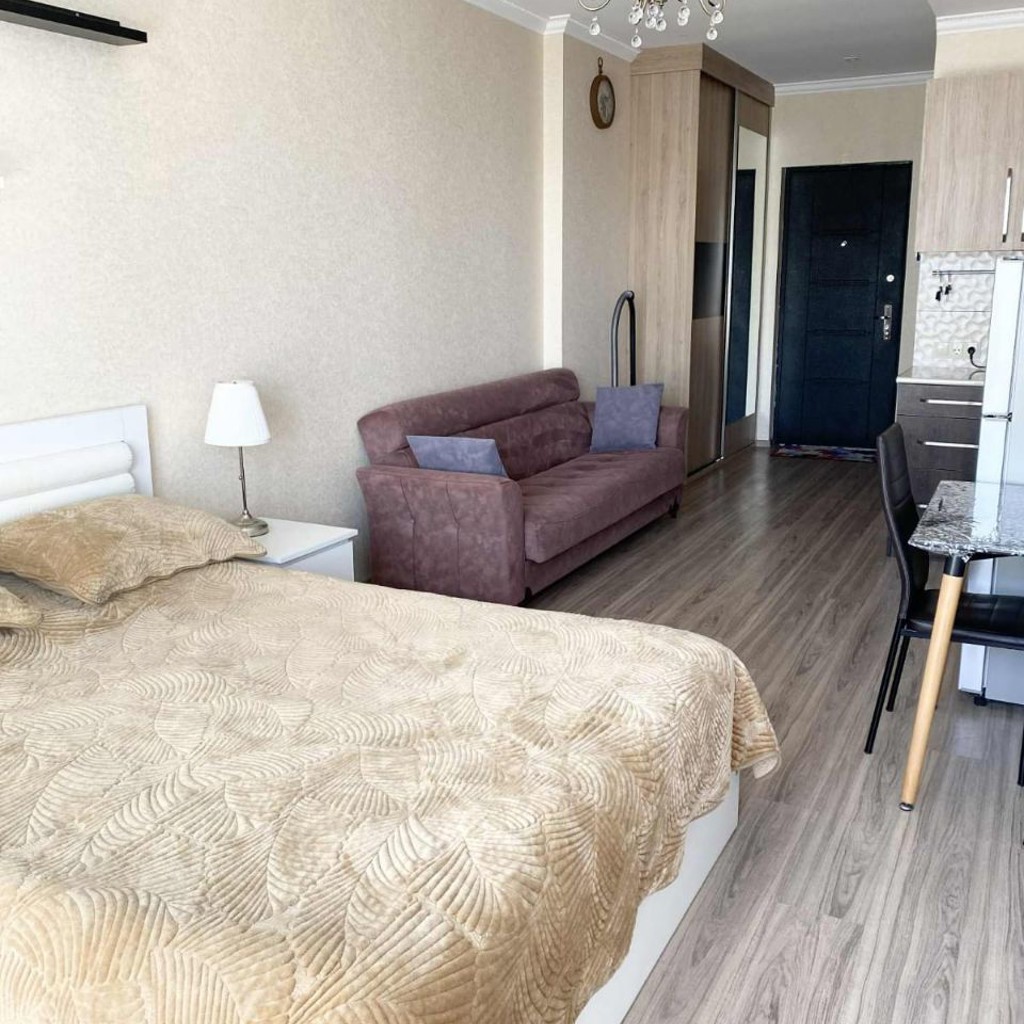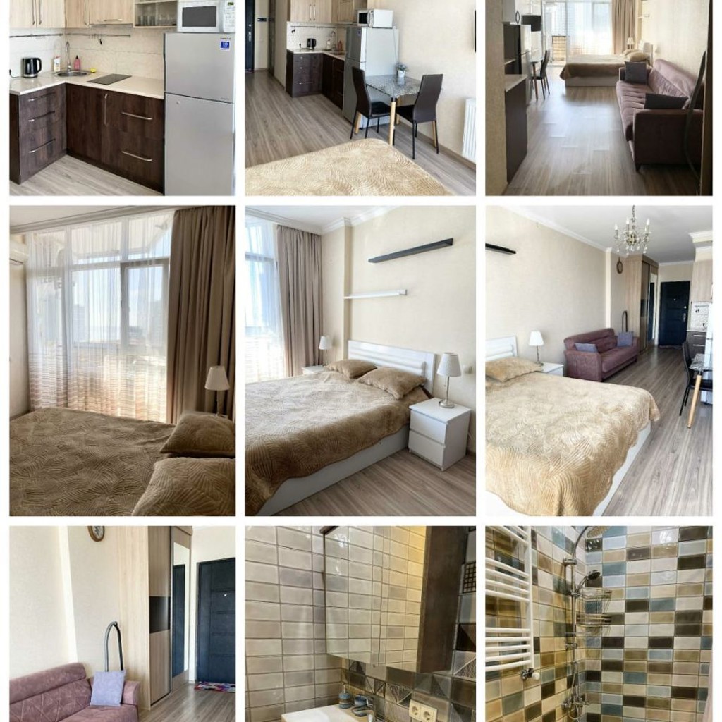 Светлая уютная студия 33 кв.м, с видом на море и город, находится на Пиросмани 18 (высокий этаж). Студия рассчитана на 1-2 человека. Двухспальная кровать, диван, большой шкаф-купе, холодильник, микроволновка, стиральная машина, кондиционер, телевизор, пилесос, утюг, Wi-Fi. Природный газ (отопление и горячая вода), застекленный балкон с раздвижными окнами. В самом доме находится фитнес-клуб, продуктовый магазин. Очень удобная локация, все в пешей доступности.